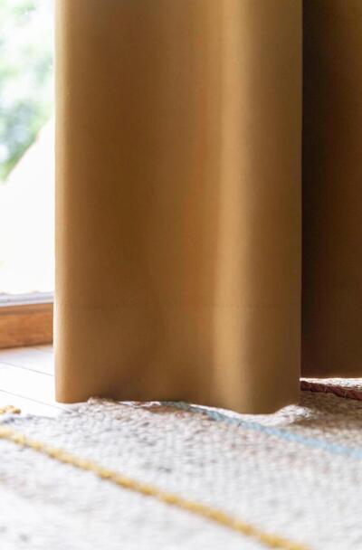 Belize is een brandvertragende blackoutstof die functionaliteit combineert met een gelijkmatig en verzorgd uiterlijk. Door de bijzondere afwerking – zonder zichtbare coating – is zowel de voor- als achterkant uitgevoerd in dezelfde tint. Dit zorgt voor een rustig geheel, zonder harde contrasten of technische lagen die opvallen. De kleur heeft een warme, caramel-okerachtige indruk die moeiteloos opgaat in uiteenlopende interieurs en zich makkelijk laat combineren met verschillende materialen en meubelstukken. Kijk je naar het motief, dan valt op dat de stof bestaat uit een heel gelijkmatig opgebouwd weefbeeld. De kleine, haast korrelachtige puntjes liggen dicht bij elkaar en vormen samen een aaneengesloten patroon dat nergens onderbroken wordt. Hierdoor oogt het geheel strak en stabiel. In de plooien wordt dit nog duidelijker: het patroon blijft overal even dicht, waardoor de stof een solide en krachtige aanblik heeft zonder dat er drukte ontstaat. Doordat het licht wordt tegengehouden, komen de schaduwen in de plooien mooi tot hun recht en krijgt de stof een rustig diepte-effect. Belize is bij uitstek geschikt voor ruimtes waar zowel verduistering als brandveiligheid belangrijk is — denk aan slaapkamers, hotels, werkkamers en ruimtes waar een serene achtergrond gewenst is. De blackoutkwaliteit zorgt voor volledige lichtdemping, wat prettig is voor mensen die gevoelig zijn voor licht of graag een gelijkmatige verduistering willen. Tijdens het bestelproces kun je kiezen voor een extra voering. Deze brengt meerdere voordelen met zich mee: