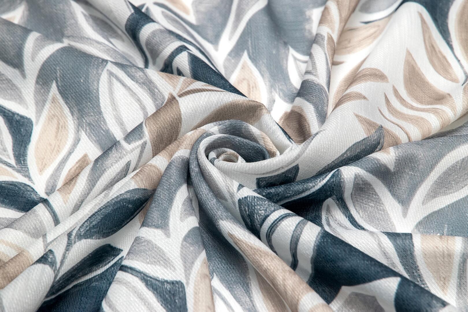 De stof heeft een fijne, licht open geweven structuur die typerend is voor een inbetween kwaliteit. Hierdoor valt het gordijn soepel en ontstaan er volle, zachte plooien. Het materiaal laat daglicht op een prettige manier door, waardoor de ruimte licht blijft terwijl inkijk wordt verminderd. De print is gelijkmatig en scherp op de stof aangebracht, waarbij de subtiele textuur van het weefsel zichtbaar blijft en bijdraagt aan de uitstraling.