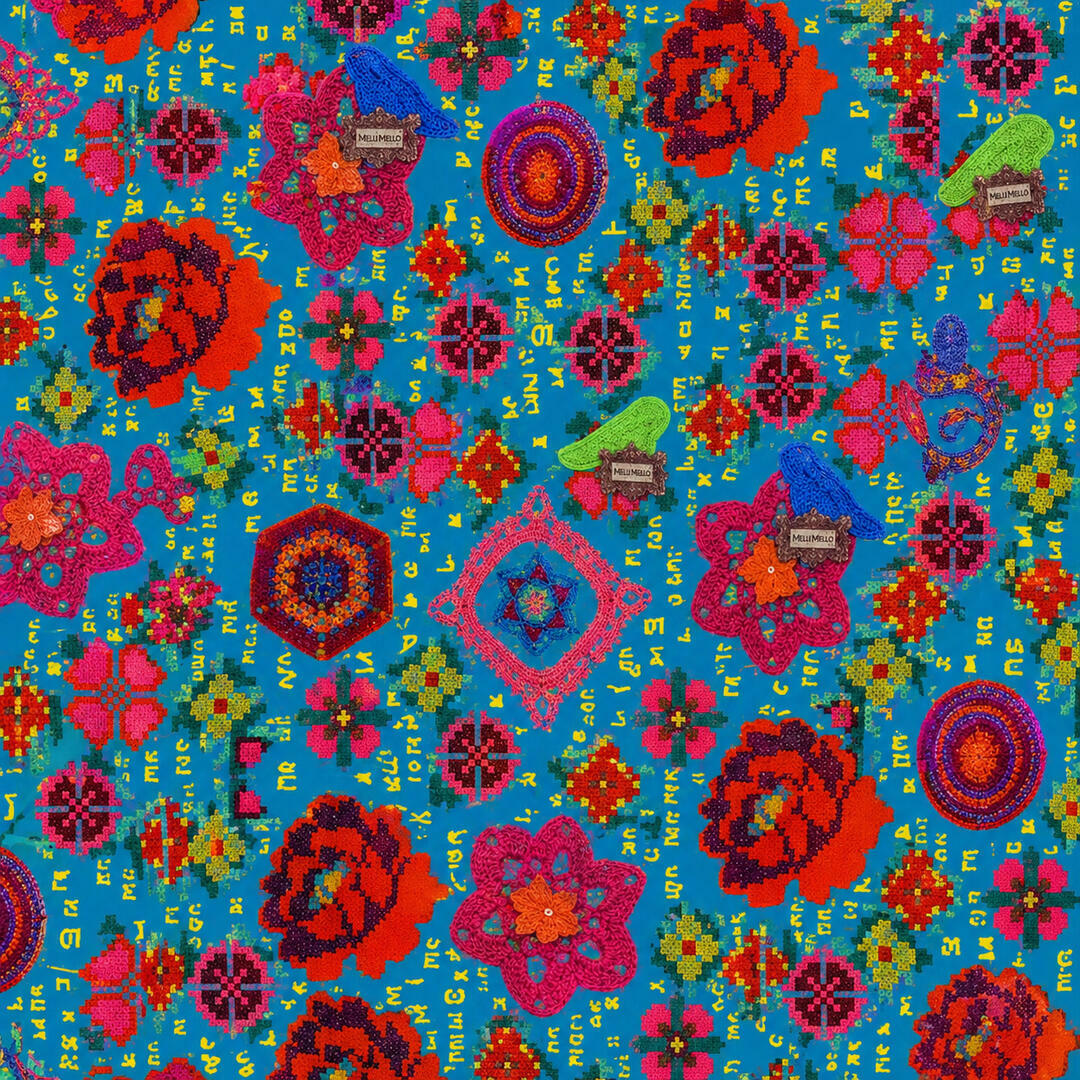Het gordijn Crochet Mosaic valt op door een rijk en speels motief waarin verschillende handwerkinvloeden samenkomen. Over de lichte ondergrond ontvouwt zich een levendige compositie van kleurrijke bloemen, geometrische vormen en cirkelvormige patronen die doen denken aan gehaakte rozetten. De details lijken opgebouwd uit kleine steken en structuren, alsof elk element met zorg is samengesteld. Dit geeft de stof een gelaagd en bijna tastbaar effect.