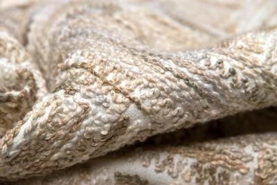 De productie van deze stof is een zorgvuldig samenspel van machinale precisie en handmatig werk. Het dradenmotief wordt laag voor laag aangebracht in een traag en geconcentreerd proces, waarbij elke stap minuten in beslag neemt. Deze werkwijze resulteert in een uitgesproken textuur met duidelijke diepte en verklaart de hogere prijsklasse ten opzichte van standaard gordijnstoffen. Door dit intensieve maakproces voelt elke meter stof rijk, gelaagd en tastbaar aan — een kwaliteit die direct merkbaar is zodra het materiaal wordt vastgepakt.