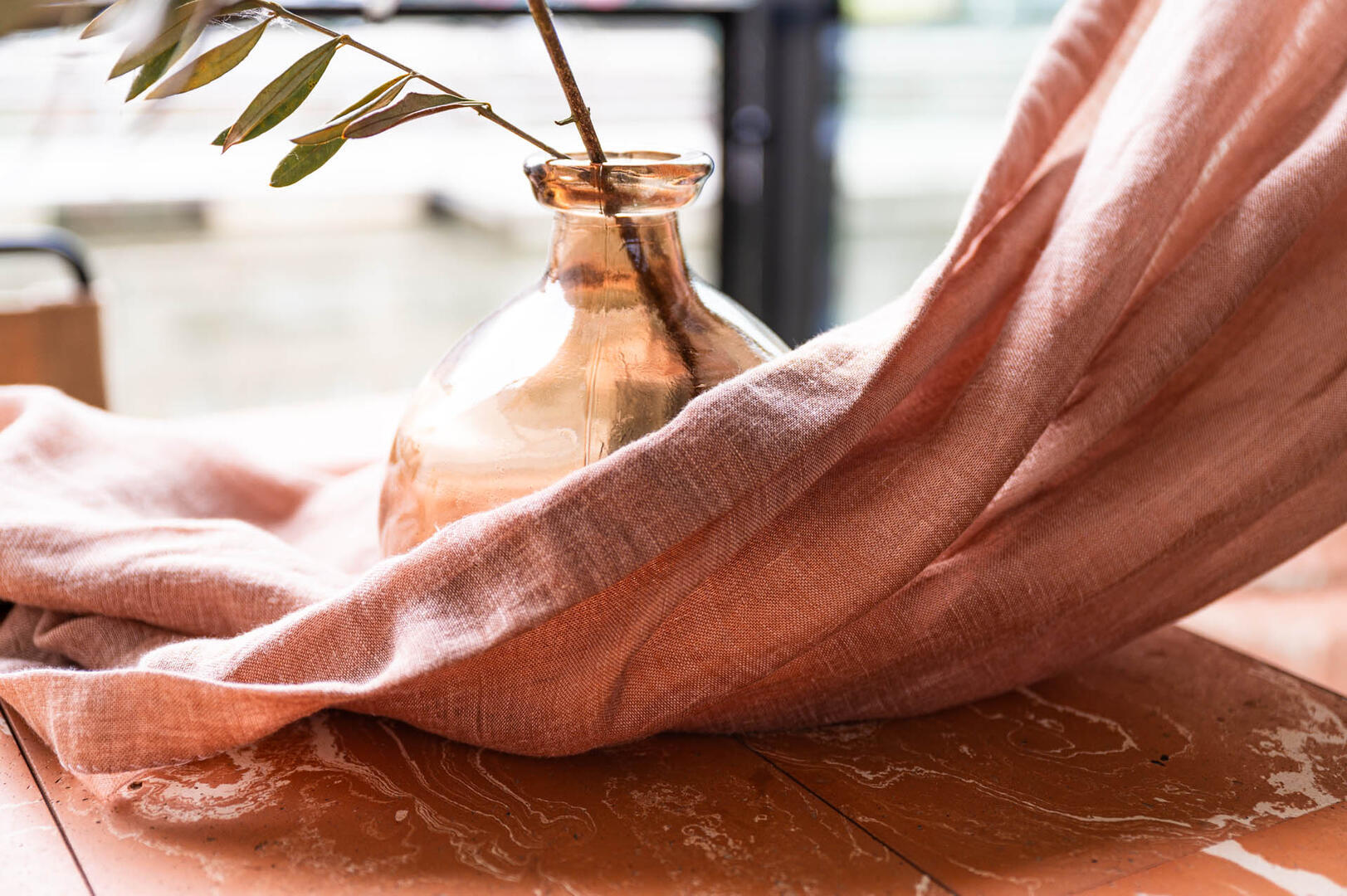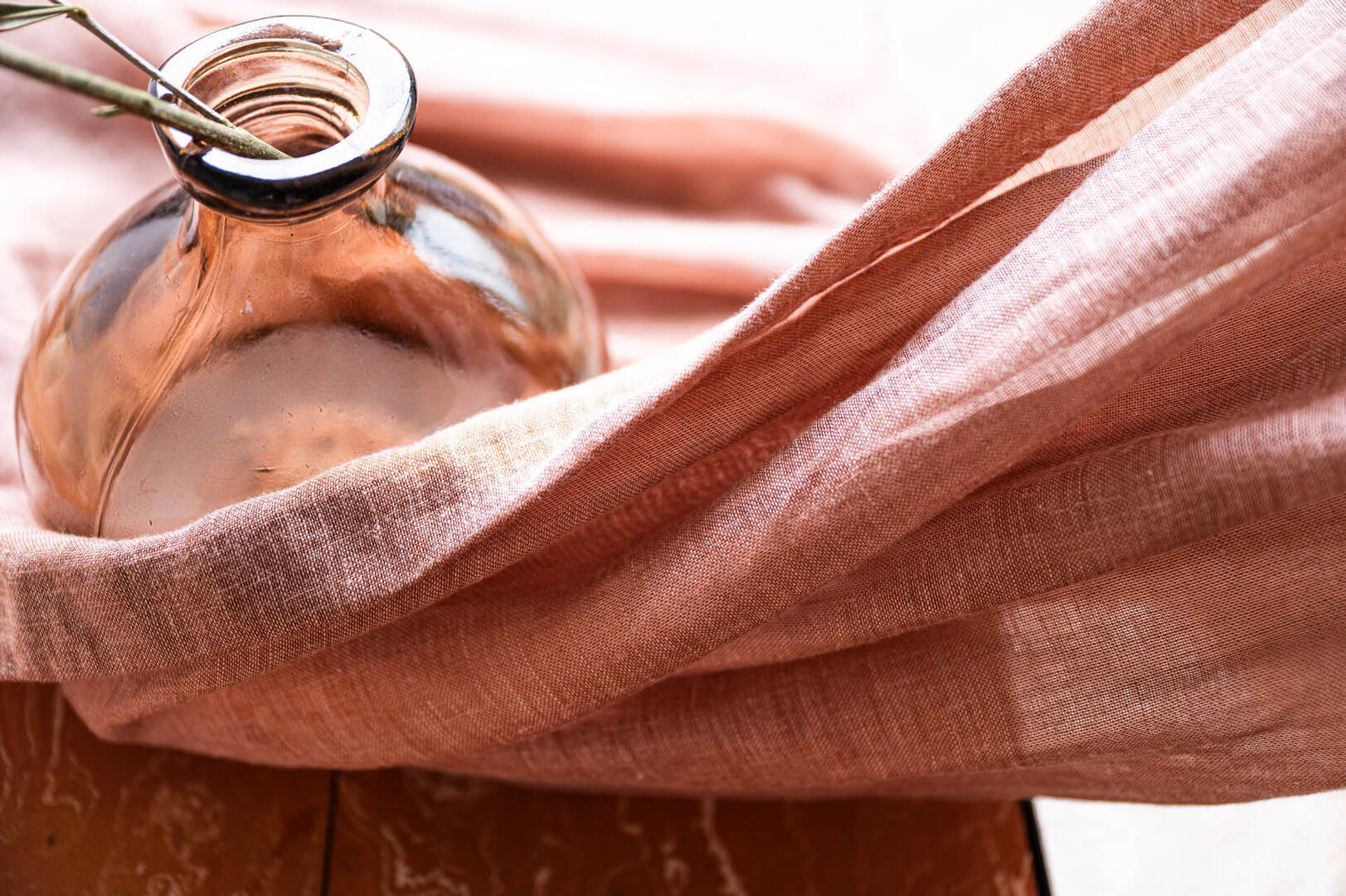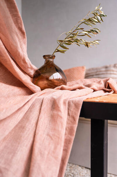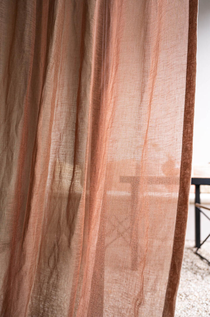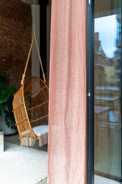 Het linnen gordijn Echo in de kleur warm terracotta brengt een natuurlijke en uitnodigende sfeer in iedere ruimte. Het stofmotief toont een fijn geweven textuur met subtiele, variërende tinten van roodbruin en oranje, wat een karakteristieke tweekleurigheid creëert door het ongekleurde linnen (70%) en gekleurde polyester garen (30%) Het resultaat is een warm en levendige uitstraling dat een rustige en gezellige ambiance toevoegt. Dankzij de behandeling zonder chemicaliën blijft de stof soepel en luchtig, wat bijdraagt aan een natuurlijk vallend effect. Echo is ideaal voor wie houdt van een lichte, doorzichtige stof die zacht om het raam valt en bij de juiste styling een subtiele streepeffect kan krijgen. Het gordijn komt vooral tot zijn recht met een lichte stuikende werking, waardoor het volume en textuur krijgt zonder te zwaar aan te voelen. Door de luchtigheid en uitstraling past het perfect in een woning waar natuurlijke materialen en een warme uitstraling gewenst zijn. Linnen gordijnen bieden verschillende voordelen: ze zorgen voor een goede ventilatie en hebben een ademende kwaliteit die de temperatuur in huis prettig houdt. Daarnaast zijn ze duurzaam en gaan ze jarenlang mee. Nadelen kunnen zijn dat linnen kreukt en dat het soms wat meer onderhoud vereist om het mooi te houden. Wil je de stof eerst voelen of zien? Bestel dan een knipstaal, meestal dezelfde dag nog verstuurd, zodat je de structuur en kleur veilig kunt beoordelen.