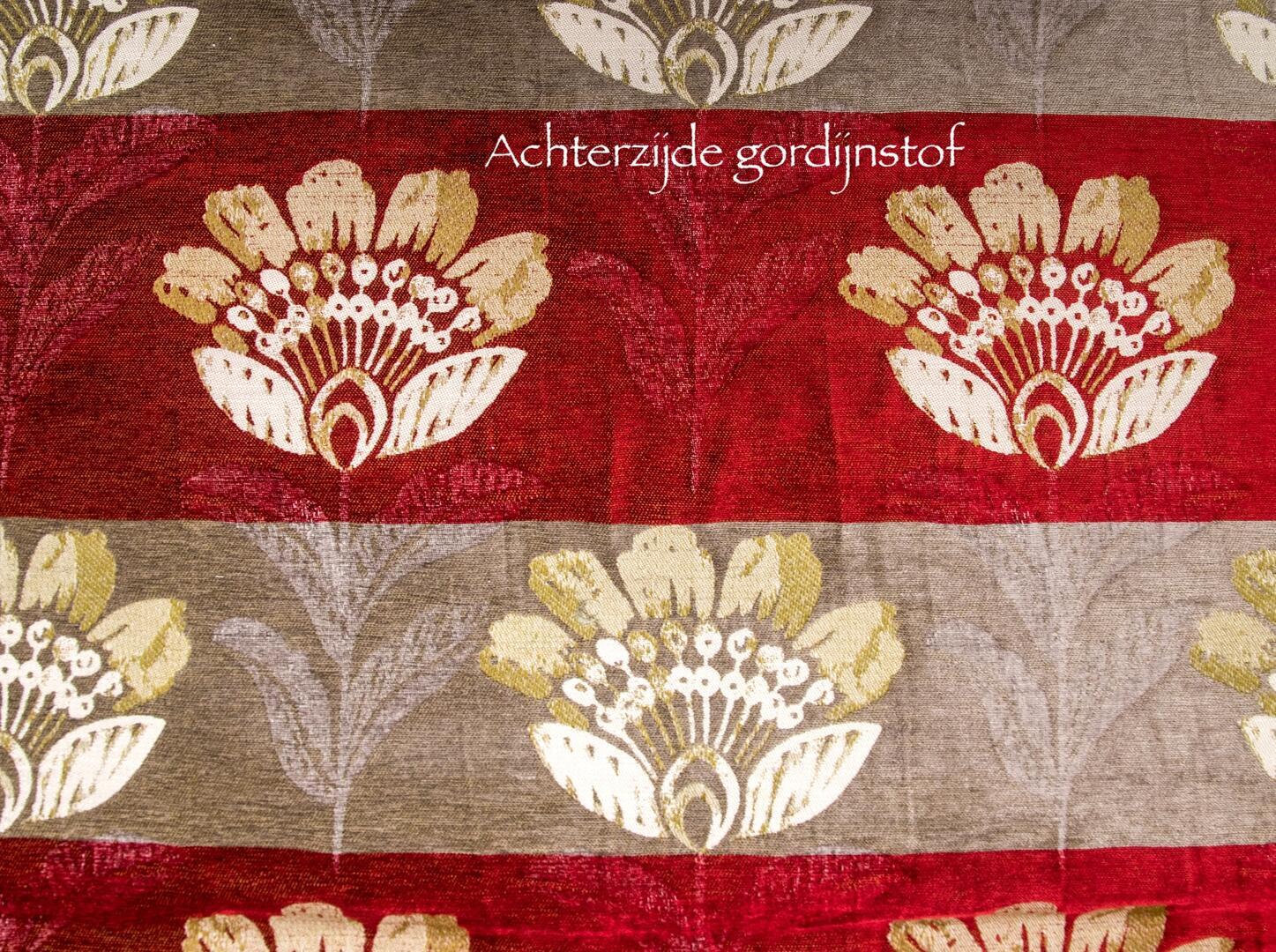 Het Bordeaux is een uitgesproken en karaktervol gordijn met een rijk bloemmotief en een bijzondere technische opbouw. De combinatie van diepe kleuren, voelbare structuur en een zware kwaliteit maakt dit gordijn tot een echte blikvanger in huis.