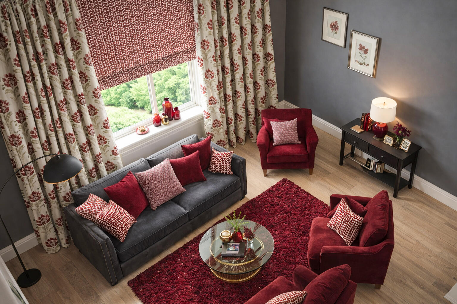 Bordeaux combineert bijzonder mooi met donkere meubels, houten vloeren, warme metaalaccenten en accessoires in rood- en groentinten. In een woonkamer zorgt het voor warmte en diepte, in een slaapkamer voor een geborgen sfeer.