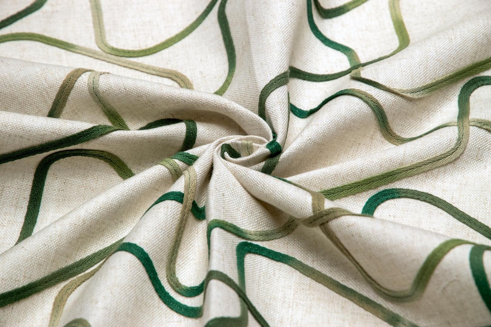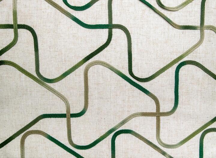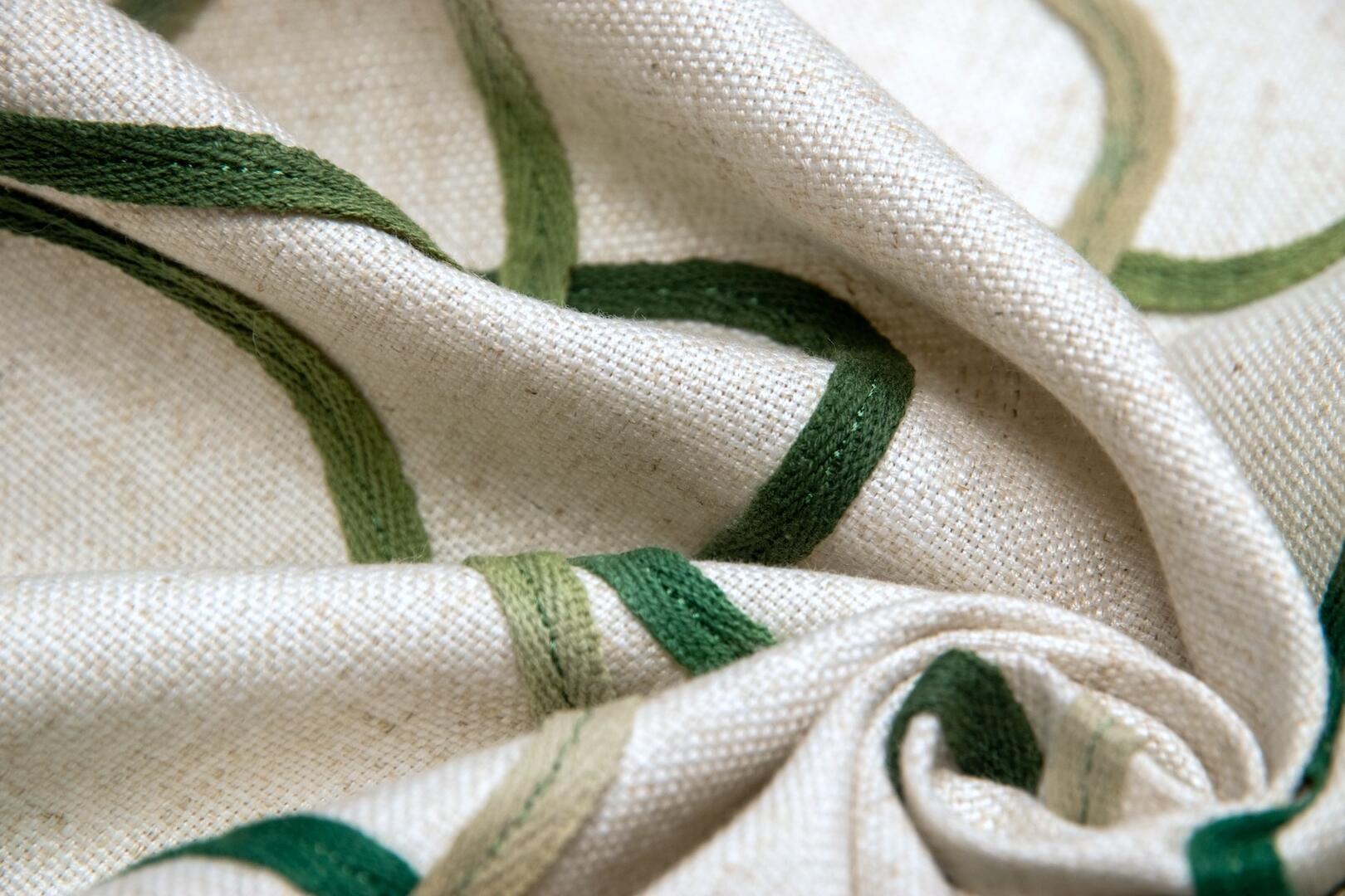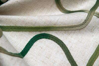 De Lauder is een uniek gordijn dat de aandacht trekt door zijn bijzondere motief van opgenaaide linten. Op de linnen-katoen stof zijn sierlijke, golvende linten bevestigd, waardoor een levendig en speels effect ontstaat dat opvalt door diepte en textuur. Het vervaardigen van deze stoffen is een zorgvuldig proces dat zeer langzaam verloopt, vaak duurt het een volledige dag om slechts één rol te produceren. Hierdoor is dit gordijn een zeldzaam en exclusief item dat een bijzondere uitstraling aan uw raam geeft. Wilt u de stof eerst in het echt zien en voelen voordat u een op maat gemaakt gordijn bestelt? U kunt een knipstaal aanvragen, dat meestal dezelfde dag nog wordt verzonden.