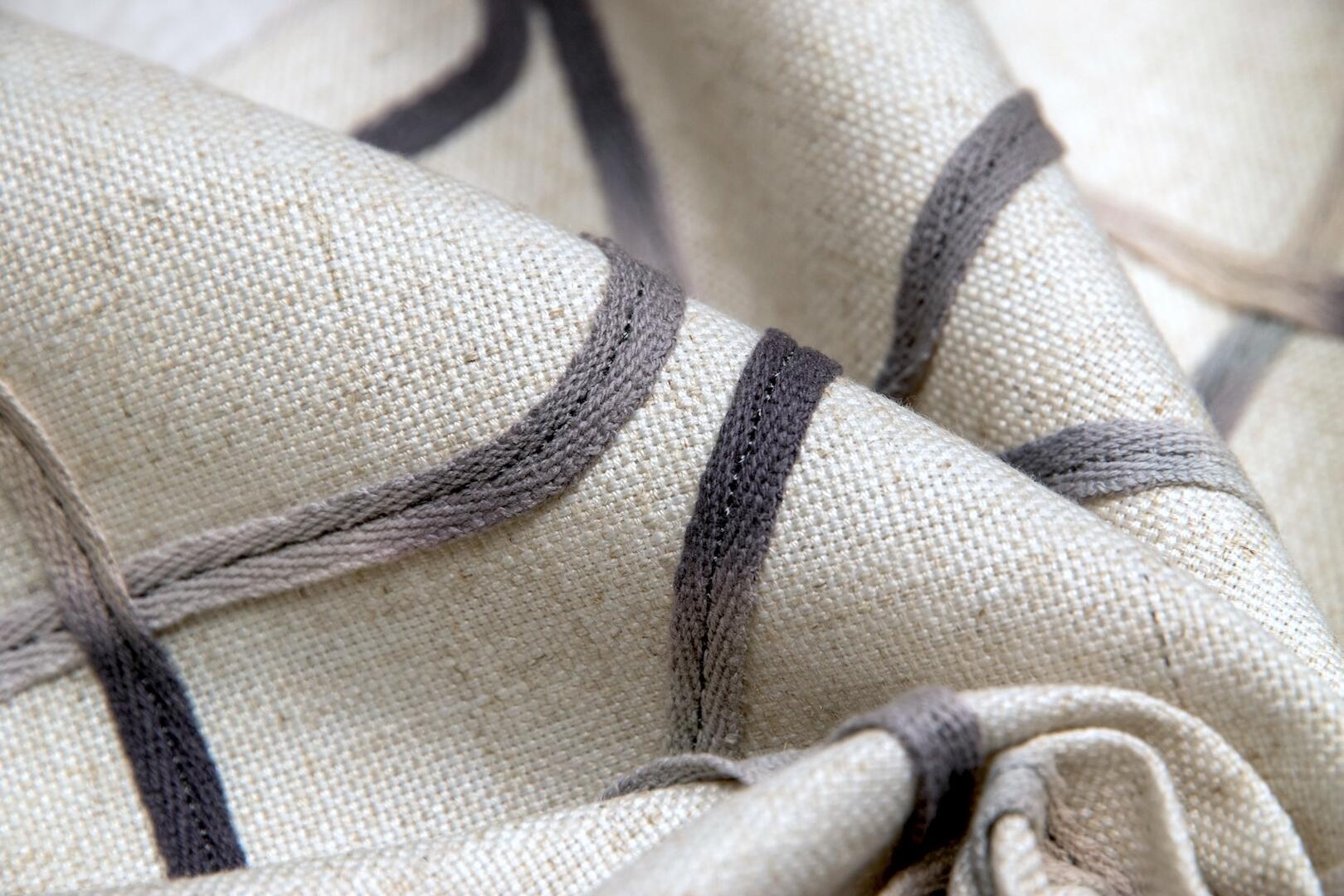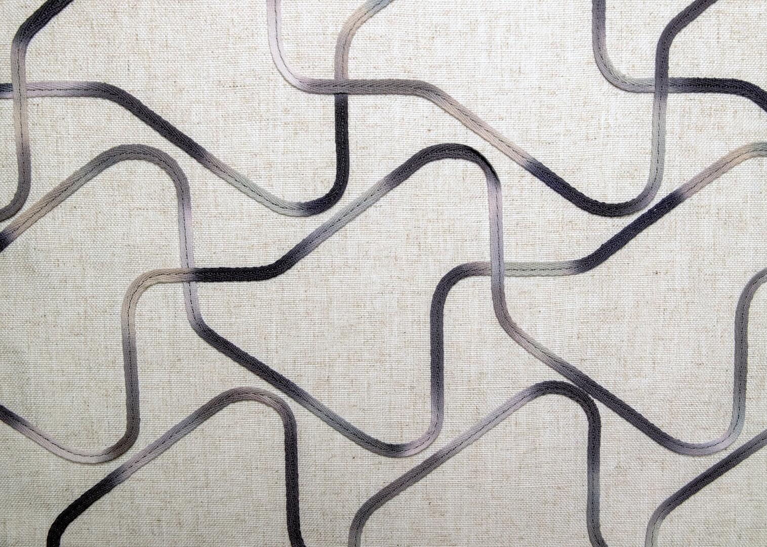 De Lauder is een uniek gordijn dat de aandacht trekt door zijn bijzondere motief van opgenaaide linten. Op de linnen-katoen stof zijn sierlijke, golvende linten bevestigd, waardoor een levendig en speels effect ontstaat dat opvalt door diepte en textuur. Het vervaardigen van deze stoffen is een zorgvuldig proces dat zeer langzaam verloopt, vaak duurt het een volledige dag om slechts één rol te produceren. Hierdoor is dit gordijn een zeldzaam en exclusief item dat een bijzondere uitstraling aan uw raam geeft. Wilt u de stof eerst in het echt zien en voelen voordat u een op maat gemaakt gordijn bestelt? U kunt een knipstaal aanvragen, dat meestal dezelfde dag nog wordt verzonden.
