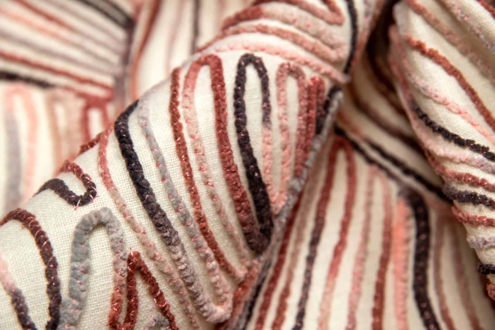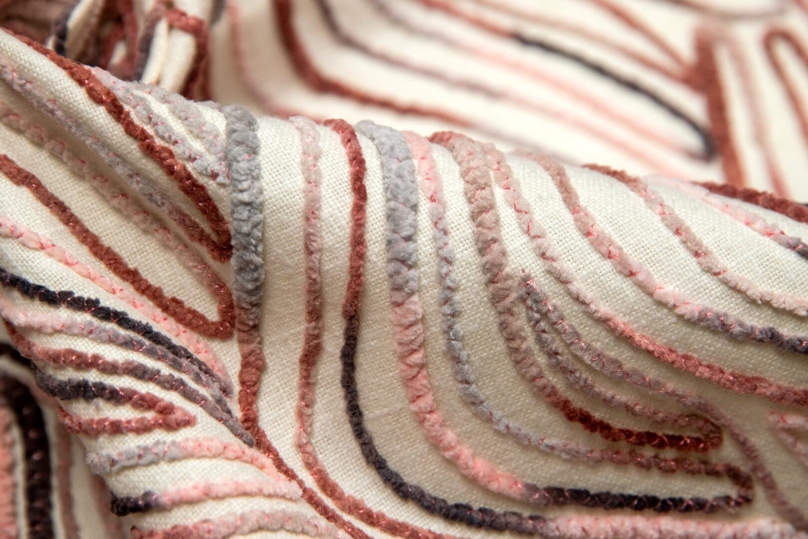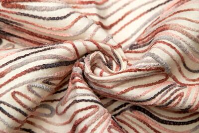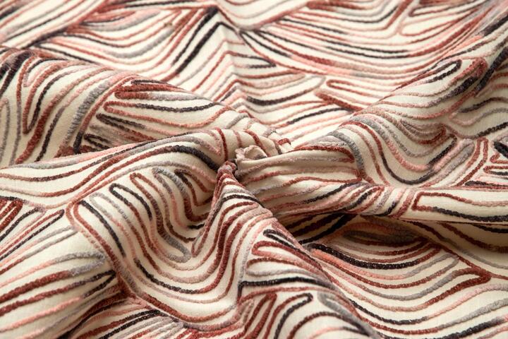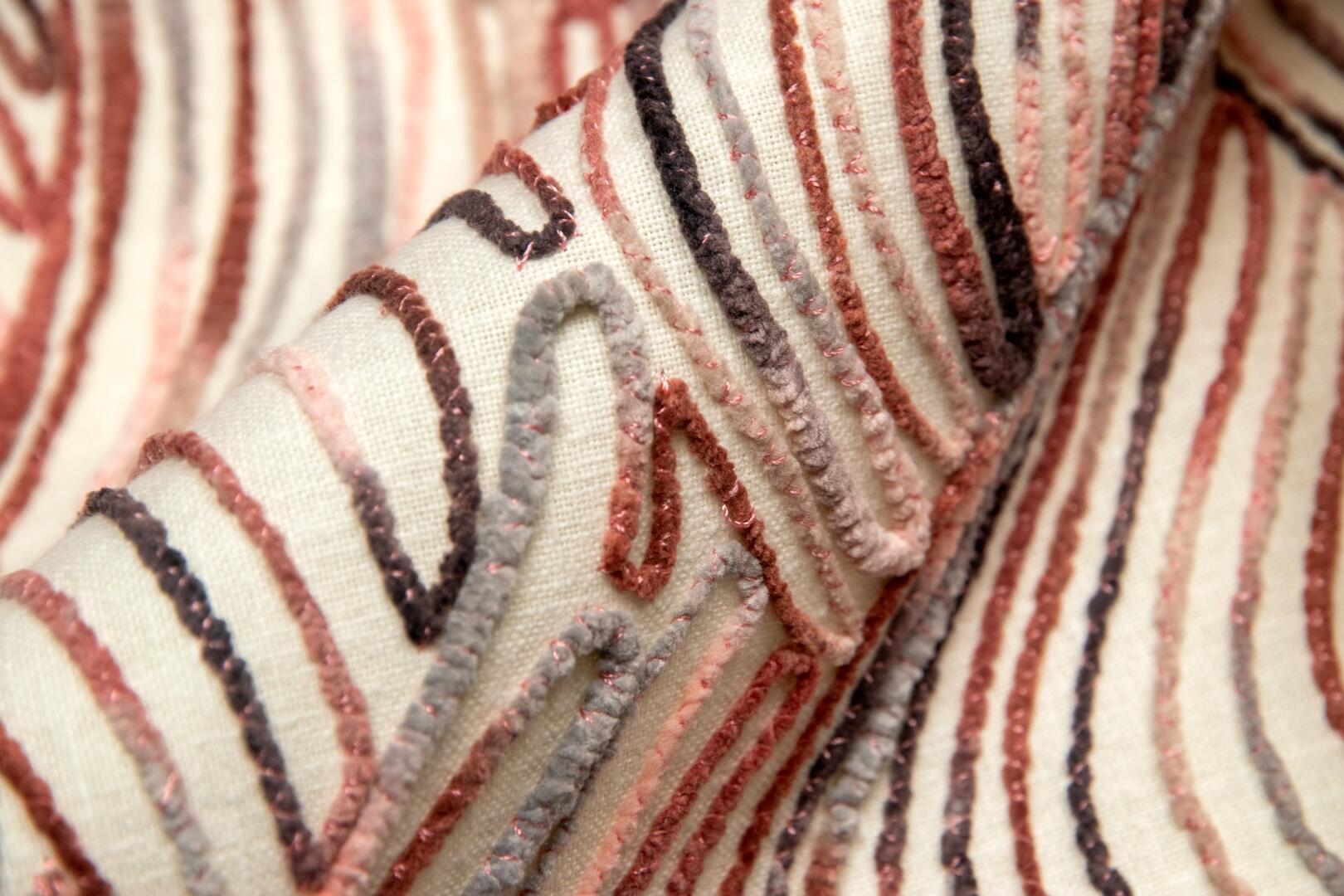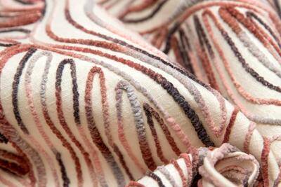 De Liyana-gordijnstof is een waar kunstwerk, met een uniek patroon van gehaakte sliertjes die in een verrassende, golvende opbouw zijn aangebracht. Het resultaat is een levendig en sculpturaal effect dat direct de aandacht trekt. Dit soort stof is uiterst zeldzaam en wordt met zorg geproduceerd, wat betekent dat het vaak een hele dag duurt om slechts één rol te maken. De stof is verkrijgbaar in twee mooie kleuren: een warme terracotta-bronsachtige tint, getoont op de sfeerfoto, en een combinatie van roze, fuchsia en grijstinten voor een zachte, rustige uitstraling. Wil je eerst een proefstuk zien en voelen voordat je een op maat gemaakt gordijn bestelt? Dat kan! Vraag een knipstaal aan, dat meestal dezelfde dag nog wordt verzonden, zodat je de textuur en kleur goed kunt beoordelen.