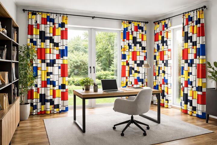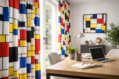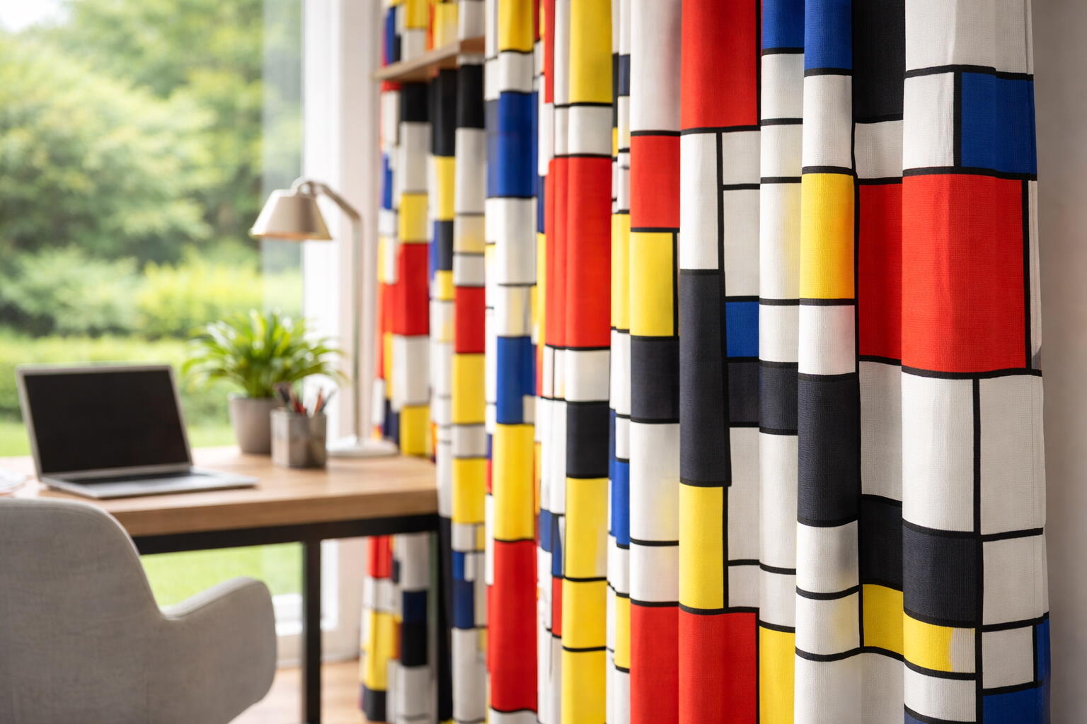 Het gordijn Mondriaan is gebaseerd op een ontwerp dat is geschilderd door de wereldberoemde schilder Piet Mondriaan. Zijn kenmerkende composities met strakke horizontale en verticale lijnen vormen de basis van dit bijzondere dessin. Het resultaat is een krachtig grafisch patroon dat direct herkenbaar is en toch moeiteloos past in een modern interieur.