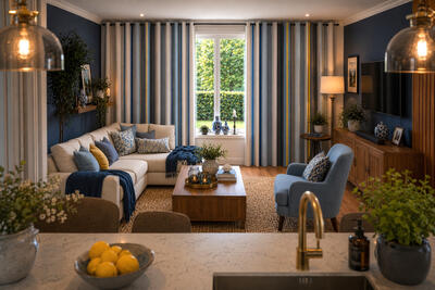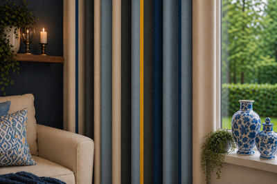 De getoonde foto’s zijn gegenereerd met AI en geven een realistisch beeld van hoe het gordijn in een ruimte kan staan. Omdat kleuren op een scherm kunnen afwijken en de structuur van deze zware katoenen stof pas echt goed zichtbaar en voelbaar is in het echt, adviseren wij om vooraf een knipstaal aan te vragen.