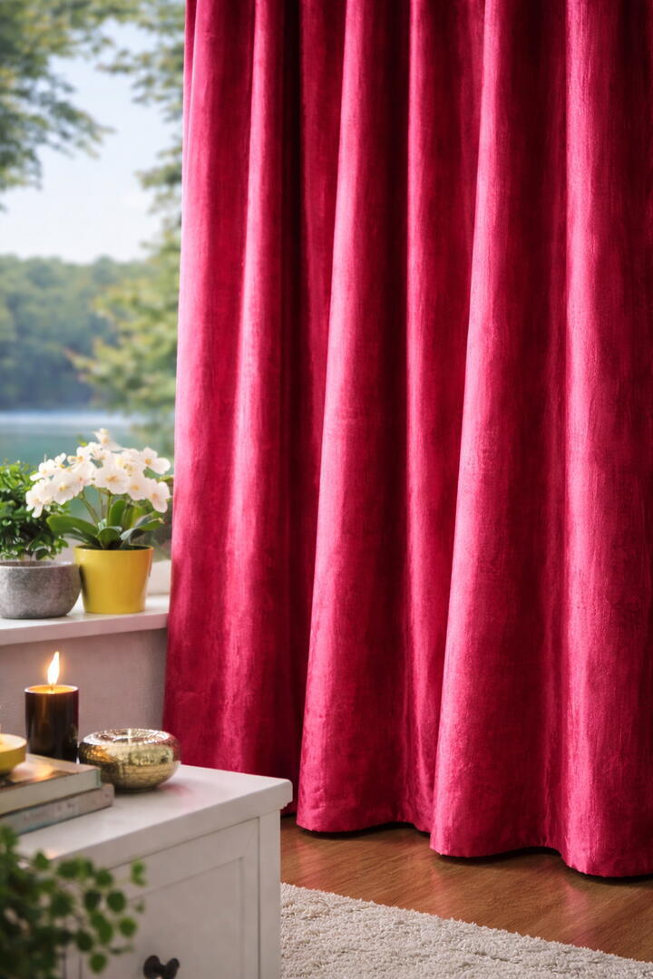 De stof heeft een duidelijke glanzende finish, zonder hard of spiegelend te worden. Juist de combinatie van glans en de wrinkelachtige structuur geeft Shadow Satin zijn eigen signatuur: levendig, warm en vol nuance. De uitzonderlijke soepelheid van de stof zorgt ervoor dat de gordijnen mooi en gelijkmatig vallen, met rustige plooien die strak en recht naar beneden lopen. De stof leent zich ook uitstekend voor een oversized toepassing, voor wie houdt van een vollere en meer nonchalante uitstraling. In de sfeerfoto’s is goed te zien hoe deze langere lengte zorgt voor een extra volle, ontspannen uitstraling. Deze uitvoering kan later altijd nog eenvoudig worden ingekort tot net boven de vloer. Shadow Satin is semi verduisterend en laat nauwelijks licht door. Hierdoor is de stof zeer geschikt voor woonkamers en slaapkamers waar privacy en lichtreductie belangrijk zijn, zonder volledig te verduisteren.