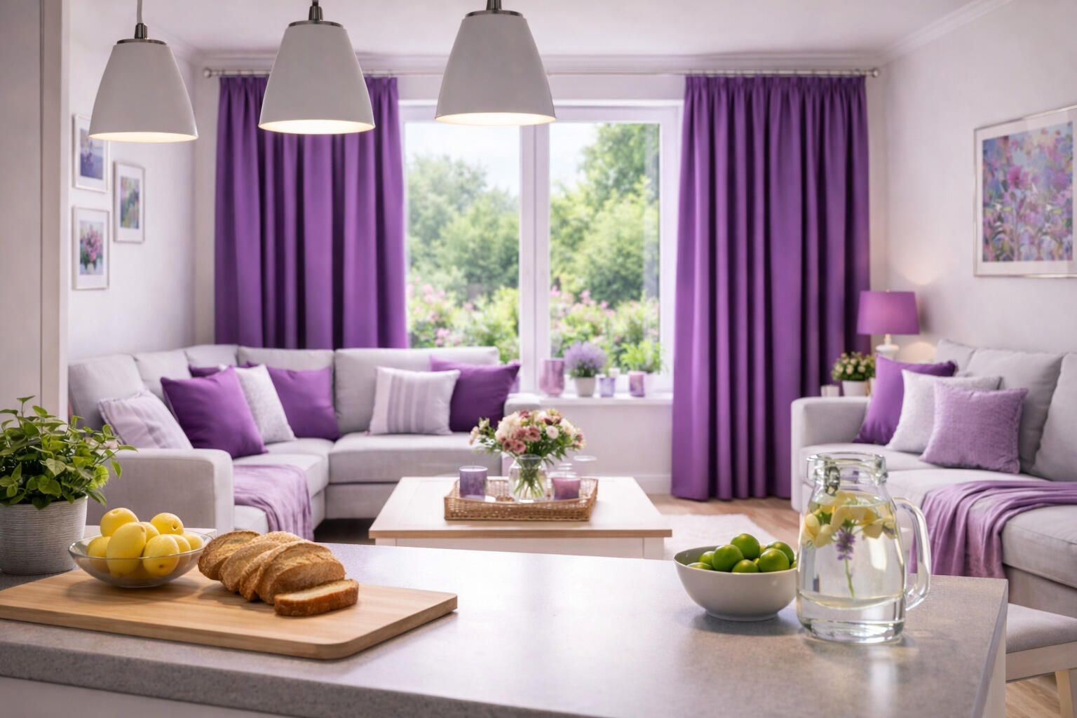 De blauwe uitvoering van Velora oogt fris, levendig en ruimtelijk. Deze tint past heel mooi in een woonkamer met witte meubels, lichte houttinten en subtiele kleuraccenten in accessoires zoals kussens, plaids en decoratie. Het blauw zorgt voor een heldere uitstraling en geeft het interieur een opgewekt en verzorgd geheel. De paarse variant heeft juist een warmere en zachtere uitstraling. Deze kleur brengt diepte en gezelligheid in de ruimte en combineert prachtig met lila, roze, wit en andere zachte tinten. Daardoor is Velora geschikt voor uiteenlopende woonstijlen, van fris en modern tot warm en huiselijk.