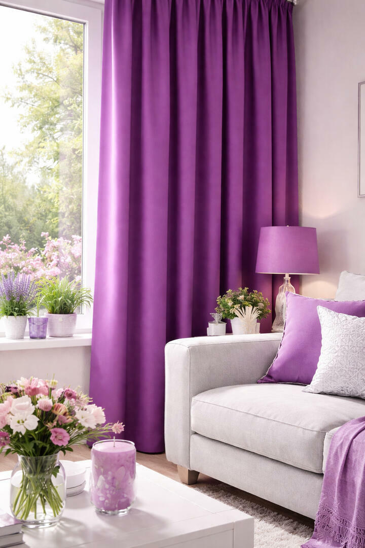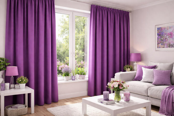 Gordijn Velora is een prachtige keuze voor wie sfeer, comfort en kleur wil samenbrengen in het interieur. Op de afbeeldingen zie je hoe dit gordijn een ruimte een warme en verzorgde uitstraling geeft. Velora komt naar voren in twee sprekende kleuren: een frisse, heldere blauwtint en een warme paarstint. Beide kleuren geven de ruimte een eigen karakter en laten zich mooi combineren met lichte meubels, zachte woontextiel en natuurlijke accenten.