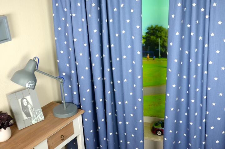 Het kindergordijn is dankzij ons ruime kleurenaanbod geschikt voor zowel de meisjes- als jongensslaapkamer. De voorzijde is bedrukt met het sterrendessin, terwijl de achterzijde neutraal wit is uitgevoerd. Hierdoor blijft de uitstraling aan de buitenkant rustig en netjes.
