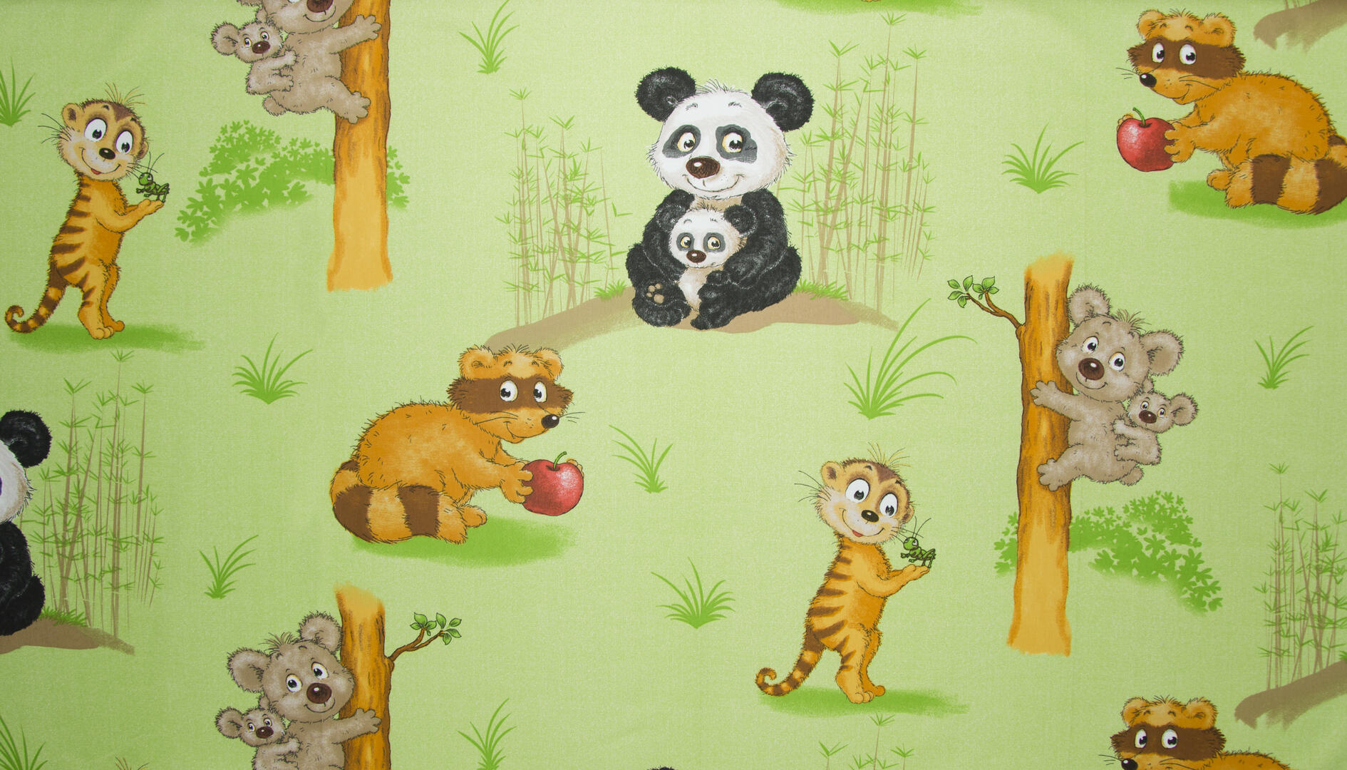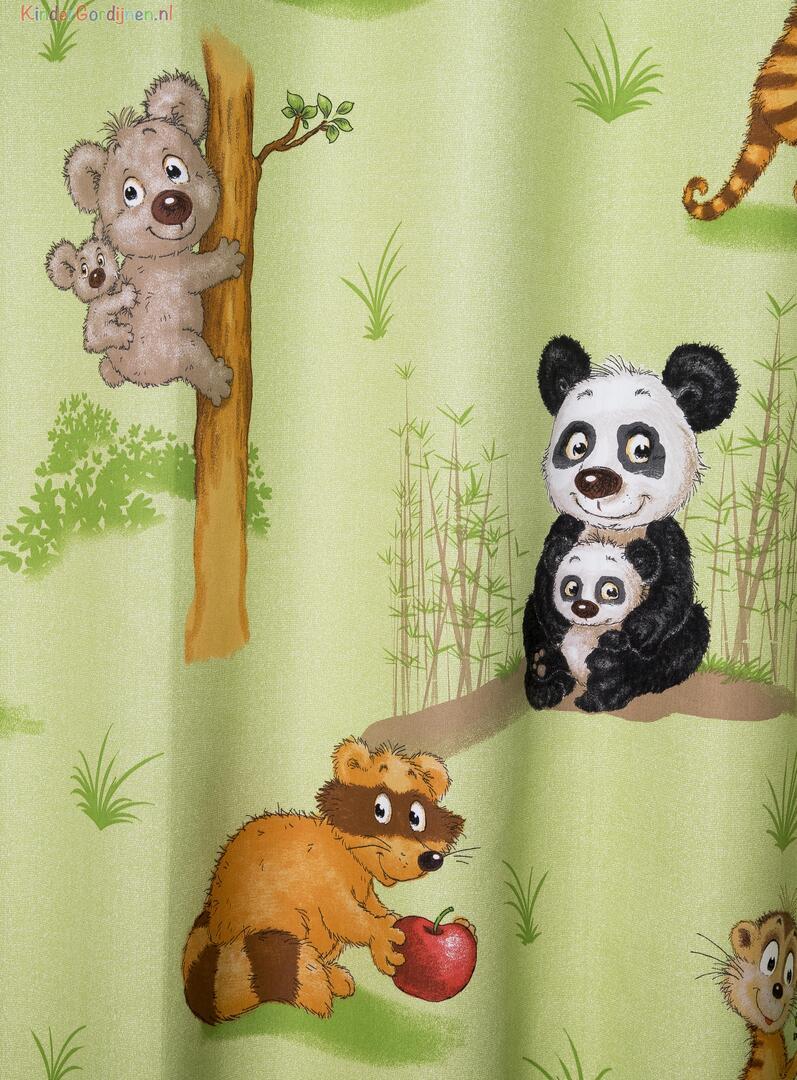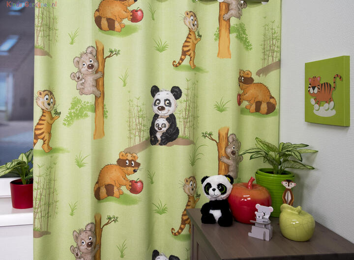 Een kindergordijn om te koesteren, wat een pláátje! De bosdieren lijken door de realistische aquareltechniek, haast handmatig op het gordijn aangebracht. Een verfijnde penseeltechniek met een zacht kleurgebruik. De dieren met hun jongen kijken je vrolijk en guitig aan en hebben zin in het leven, dat straalt er vanaf! Het patroon is royaal, waardoor je dit gordijn ook prima tot de grond kunt laten maken. De panda is bijvoorbeeld al 25 cm groot. De print is aan de voorzijde gedrukt op semi verduisterende stof waarmee een kinderkamer flink donkel zal worden. Voor 100 verduistering kun je optie extra voeren aanvinken in het bestelproces.