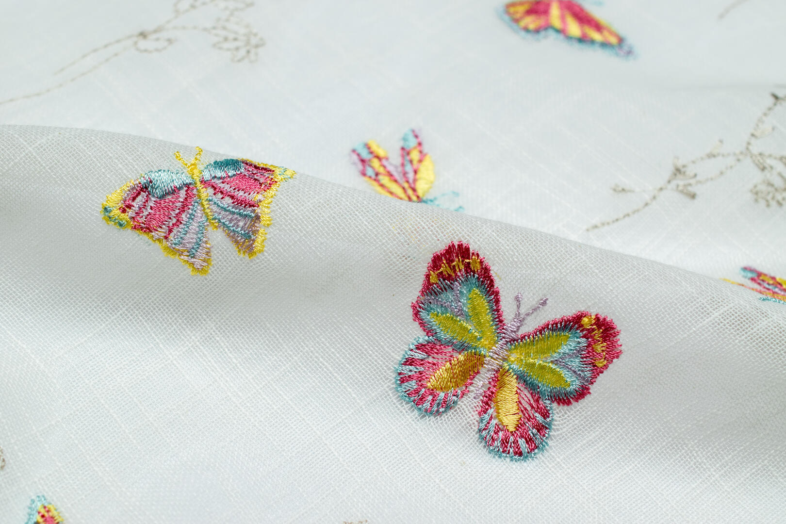 Mooie en unieke transparante vitrages en inbetweens perfect geconfectioneerd, dat is wat we belangrijk vinden. Dat geldt zeker ook voor deze vitrage Flutterby. De Flutterby komt het mooist tot z’n recht met een vlinder of tri-plooi.