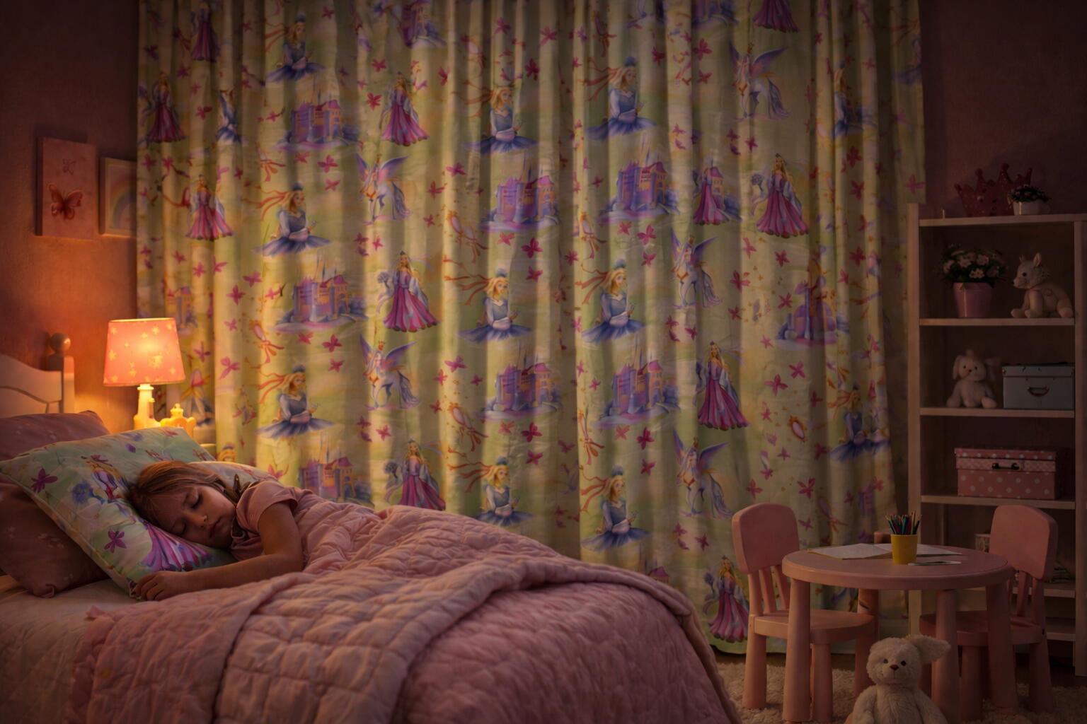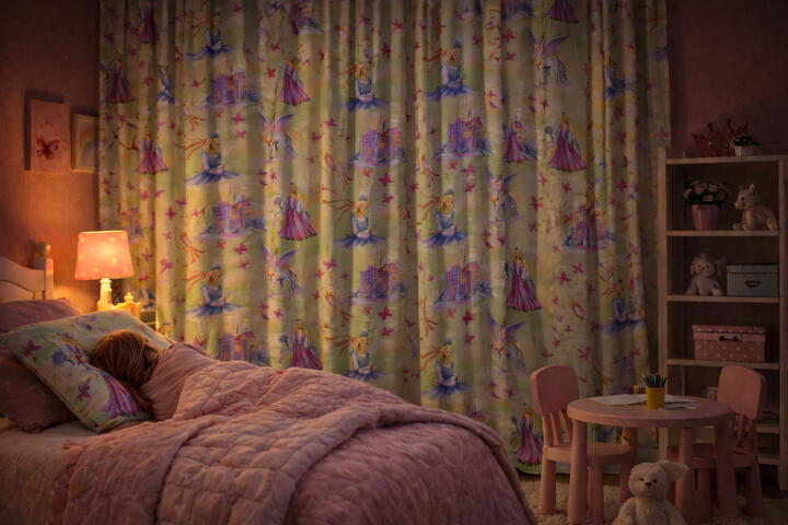 Dit gordijn is niet alleen een decoratieve toevoeging aan de kinderkamer, maar ook een bron van magie en inspiratie. Het brengt een sprookjesachtige sfeer in de ruimte en nodigt uit tot urenlang fantasierijk spel. Je prinsesje kan zich voorstellen dat ze samen met de prinsessen door het paleis danst, op de rug van de eenhoorn rijdt en vlindertjes achtervolgt in een betoverend avontuur.