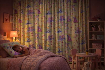 De gordijnstof van de Unicorn Princess is gemaakt van hoogwaardig polyester. Dit materiaal is uitermate geschikt voor gordijnen. Het rekt namelijk niet uit, het krimpt bijna niet en verkleurt veel minder snel dan katoen. Op de stof staan verschillende afbeeldingen van prinsessen, kastelen en eenhoorns. De stof is geverfd in verschillende vrolijke zachte kleuren, daardoor passen de gordijnen in vrijwel iedere kinderkamer. Deze prinsessen gordijnen zullen de mooiste dromen van jouw kind waarmaken. De breedte van de gordijnstof is 140 cm. Het patroon heeft een breedte van 64 cm.