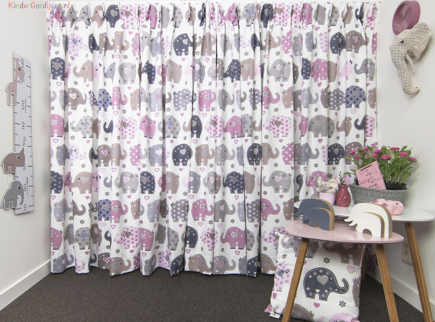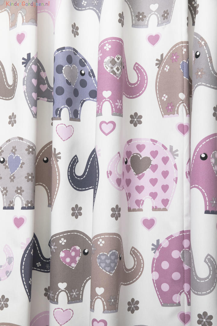 Een vertederend gordijn, dat is deze Elephantheart! Het lijkt alsof de hartjes en olifantjes als het ware met een stoer grof stiksel op de stof zijn gemaakt. De olifantjes zijn in deze vormgeving een snoezige klassieker. Extra leuk is natuurlijk het eigentijdse kleurgebruik, leverbaar in een fris kleurpalet en één met rustige, verpoederde tinten. Kortom voor jouw babykamer zit er zeker een optie bij. De vrolijke fantjes zijn 17 x 13 cm groot en gedrukt op soepele, satijn glad geweven stof. Wanneer je het leuk vindt, kan je hartjes behang op een wand aanbrengen, of iets met een grafische blok of ruitje. Want ook met een patroontje kun je leuk combineren. Voor een verduisterend effect kun je deze stof laten voeren. Geef jij een hartje aan dit olifantje?