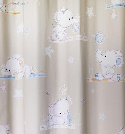 Wat een schitterende kwaliteit gordijnstof! Zien is geloven, zo mooi soepel geweven én maar liefst 280 cm breed! Dat betekent dat het babykamer gordijn meestal naadloos kan worden gemaakt. De schattige beren print is gedrukt op een heel fijn geribde stof, wat een vlotte sportieve uitstraling geeft. De olifantjes zijn op de voorzijde gedrukt, maar liefst 22 cm groot en leverbaar in 3 verschillende ondergrond kleuren. Eigentijds vergrijsd blauw voor de jongenskamer, pastel roze voor meisjes slaapkamer en warm zachtgrijs voor als je liever geheim wilt houden welk lief kleintje er komt slapen. Door de royale print kun je het gordijn uitstekend tot de grond laten confectioneren. Wanneer je extra verduistering wenst, graag optie voeren aanvinken in het bestelproces. Kortom, deze fraaie stofserie is een aanwinst binnen onze enorme collectie! ~Have a happy elephants day