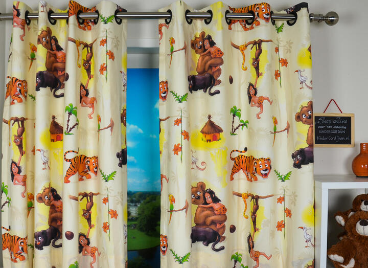 Een prachtig gordijn voor je raam! Als jij je eigen gordijnen kiest, wordt het helemaal jouw kamer. Deze gordijnstof met de naam Mowgli is gemaakt van de beste materialen waardoor het gordijn mooi in de plooi valt. Het aantal te gebruiken banen gordijnstof van 140 cm breed wordt door ons vakkundig aan elkaar geconfectioneerd zodat het patroon van 64 cm mooi doorloopt. Laat voor een aangename isolatie en extra verduistering de gordijnen voeren: een verschil van dag en nacht!