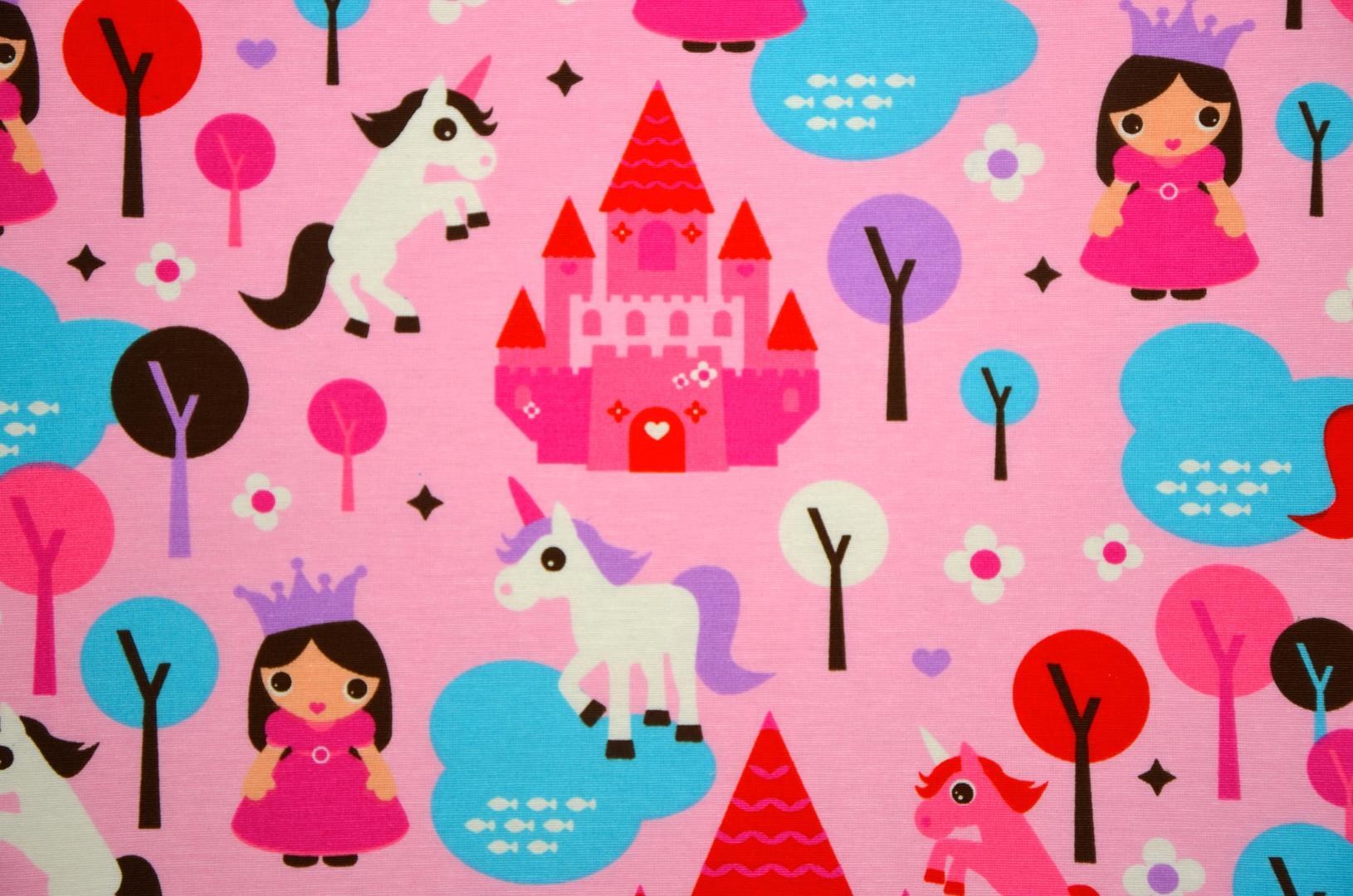 Kastelen, prinsessen en een eenhoorn, een gordijn uit een SPROOKJE! Een sprookje vol magie voor de meisjesslaapkamer. De eenhoorn is een mythisch dier en staat symbool voor zuiverheid. Hier is zij 7 cm groot en het kasteel 18 cm. Gedrukt op matte, ietwat geruwde stof. Het ‘prinsessen thema’ kan je natuurlijk leuk uitbouwen met accessoires; spiegeltjes, juwelenkistje, fluweel & linten. Voor jou als prinsesje in je DROOMkamer! Voor verduistering even voeren.