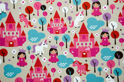 Kastelen, prinsessen en een eenhoorn, een gordijn uit een SPROOKJE! Een sprookje vol magie voor de meisjesslaapkamer. De eenhoorn is een mythisch dier en staat symbool voor zuiverheid. Hier is zij 7 cm groot en het kasteel 18 cm. Gedrukt op matte, ietwat geruwde stof. Het ‘prinsessen thema’ kan je natuurlijk leuk uitbouwen met accessoires; spiegeltjes, juwelenkistje, fluweel & linten. Voor jou als prinsesje in je DROOMkamer! Voor verduistering even voeren.