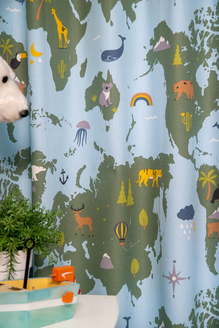 Een prachtig gordijn voor je raam! Als jij je eigen gordijnen kiest, wordt het helemaal jouw kamer. Deze gordijnstof met de naam Travel the World is gemaakt van de beste materialen waardoor het gordijn mooi in de plooi valt. Het aantal te gebruiken banen gordijnstof van 140 cm breed wordt door ons vakkundig aan elkaar geconfectioneerd zodat het patroon van 64 cm mooi doorloopt. Laat voor een aangename isolatie en extra verduistering de gordijnen voeren: een verschil van dag en nacht!