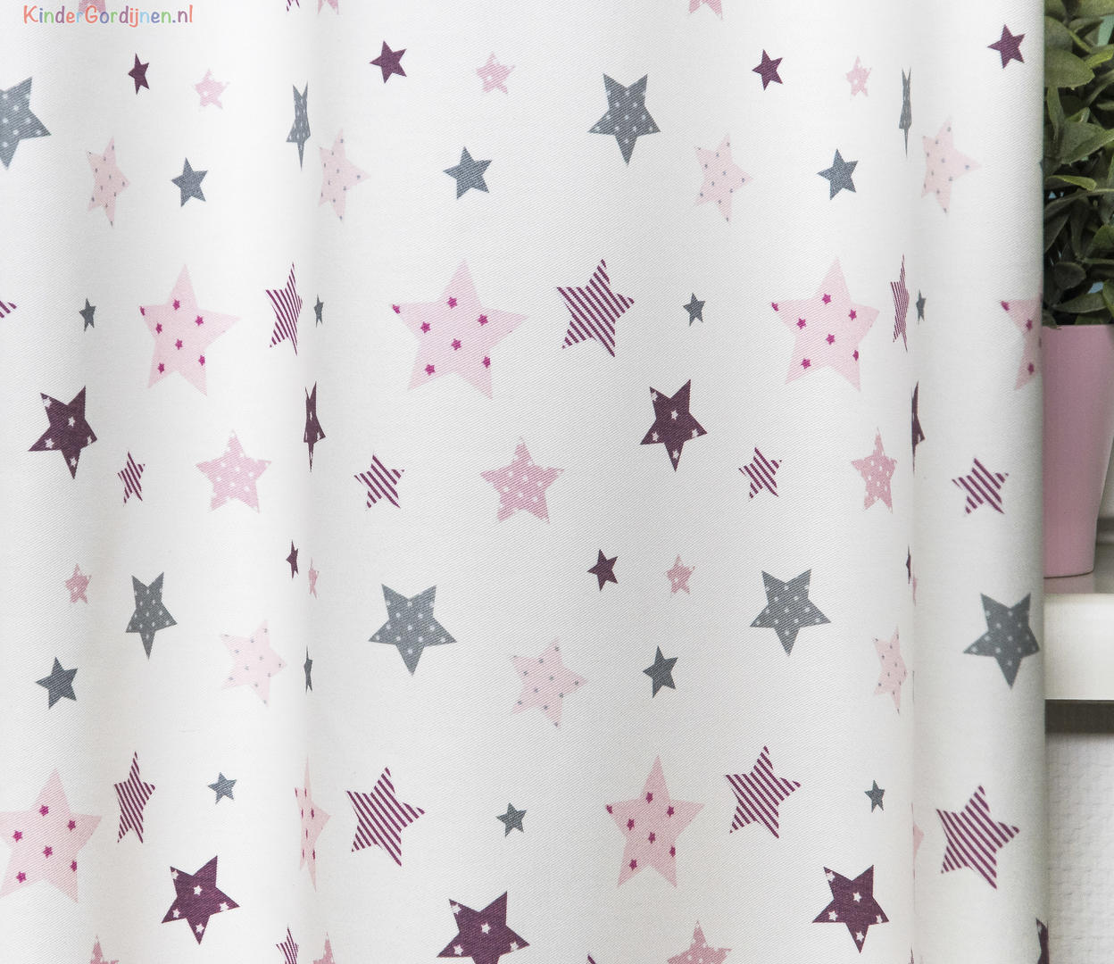 Wat een schitterende kwaliteit gordijnstof! Zien is geloven, zo mooi soepel geweven én maar liefst 280 cm breed! Dat betekent dat het babykamer gordijn meestal naadloos kan worden gemaakt. De is print is gedrukt op een heel fijn geribde stof, wat een vlotte & sportieve uitstraling geeft. Het sterretjes patroon is op de voorzijde gedrukt op de warm witte ondergrond en leverbaar in 3 verschillende kleuren. Blauw- grijs voor de jongenskamer, pastel roze - grijs voor meisjes slaapkamer en camel - gijs voor als je liever geheim wilt houden welk lief kleintje er komt slapen. Combineren kan met een verduisterend rolgordijn uit onze collectie. Of optie voeren aanvinken in het bestelproces wanneer je extra verduistering wenst. Kortom, deze fraaie stofserie is een aanwinst binnen onze enorme collectie!