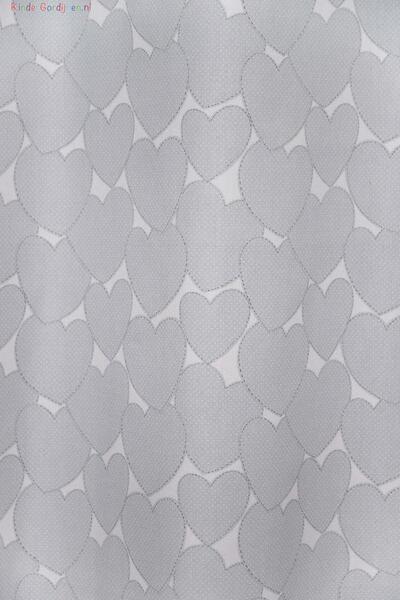 De hartjes hebben een zachte, afgeronde vorm en zijn gelijkmatig verdeeld over de stof. Door het herhalende patroon ontstaat een rustig geheel dat perfect past in een babykamer. De combinatie van de warme witte basis met de gekleurde harten geeft het gordijn een vriendelijke uitstraling en laat zich eenvoudig combineren met andere materialen en accessoires.