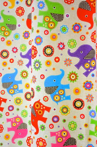 Dit decoratieve kindergordijn moet je eigenlijk in het écht zien! De nostalgische olifantjes zijn gedrukt op heel licht geribbelde stof. De ondergrond heeft een fraaie, warme kleur. Dat geeft extra gezelligheid aan de slaapkamer. De ‘fantjes’ zijn 10 cm groot en kijken lieflijk naar je wanneer jij speelt of naar dromenland gaat. Desgewenst verduisterend voeren.