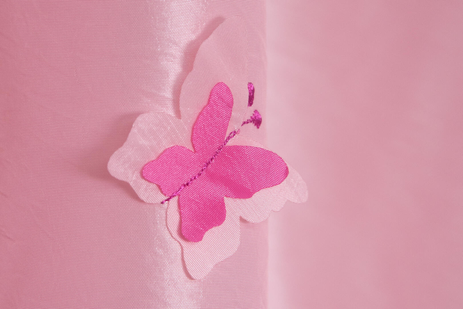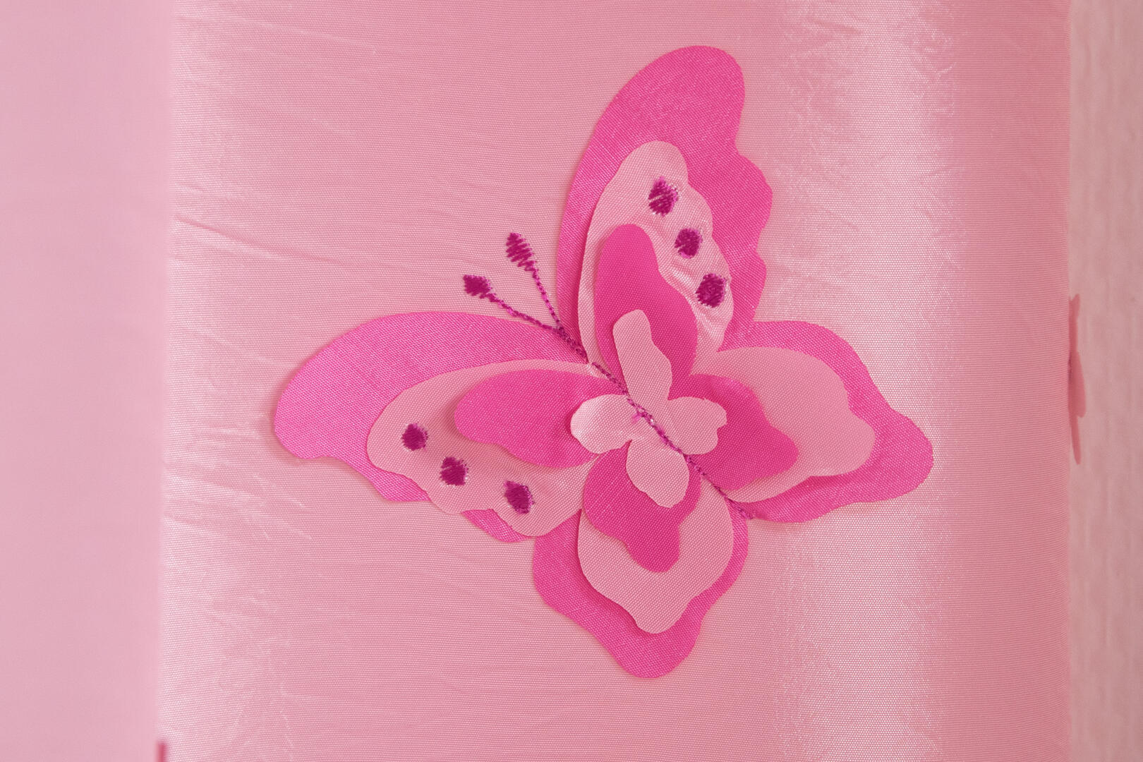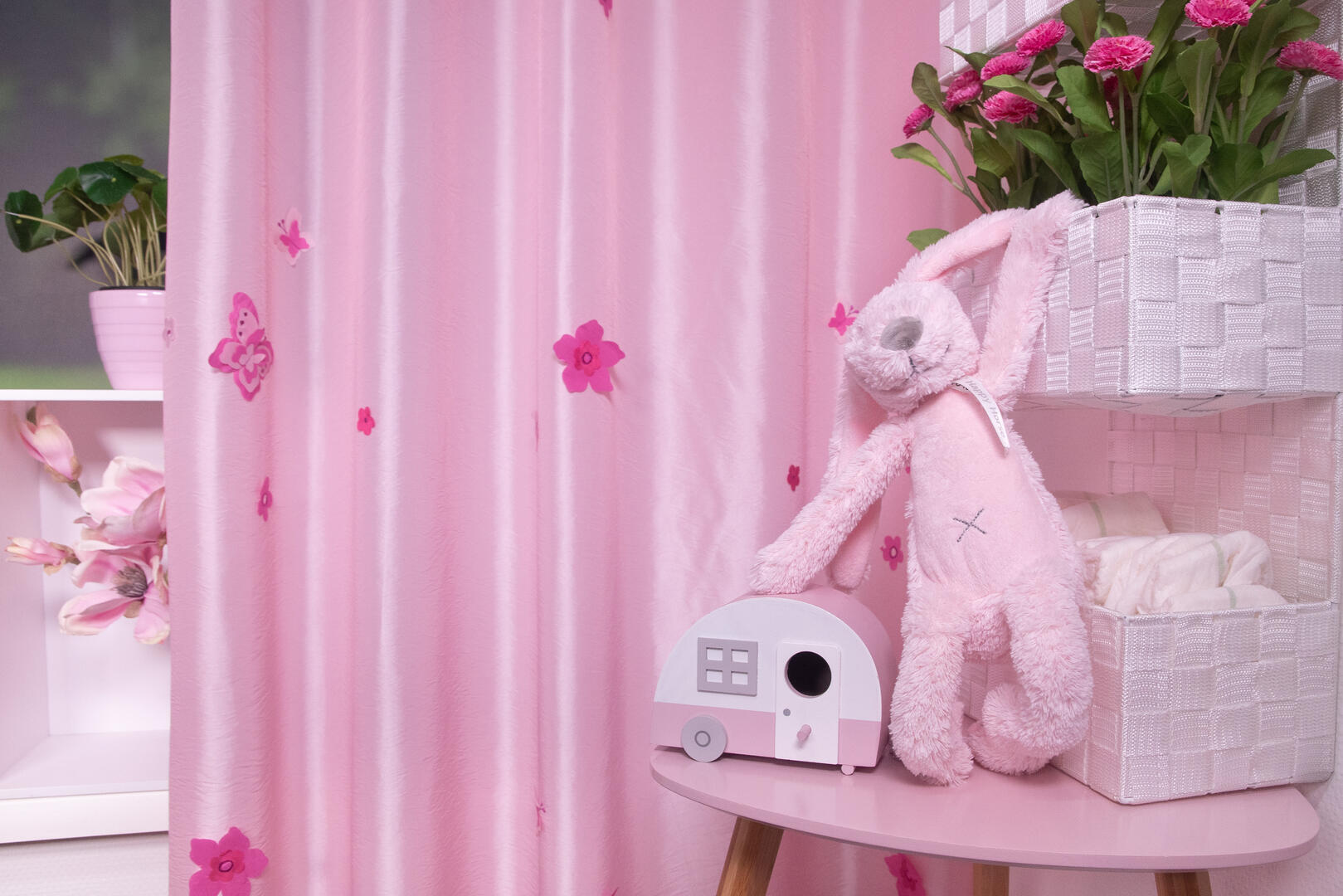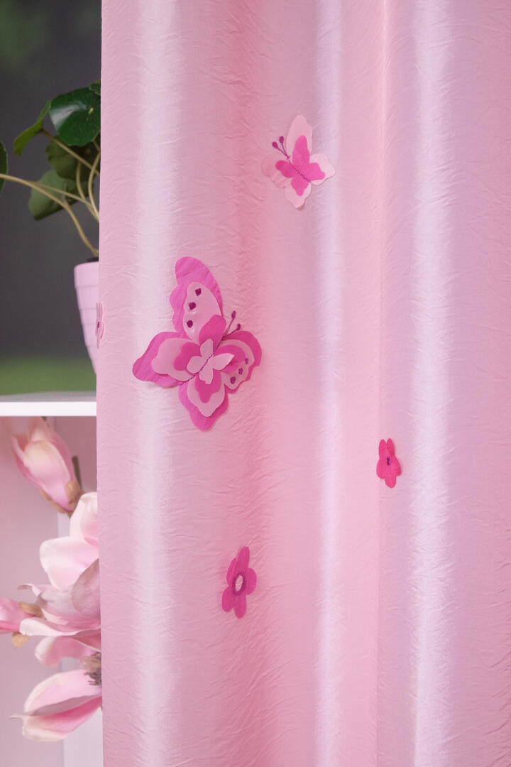 Het prachtige Beauty Butterfly meisjesgordijn brengt betovering en speelsheid in de kinderkamer!  Ben je op zoek naar iets unieks en opvallends? Bekijk dan zeker deze duurzame zacht roze gordijnstof, waarbij het lijkt alsof de opgestikte 3D-vlinders zojuist tussen allerlei bloemetjes zijn geland. Het resultaat? Een levendig en kleurrijk decoratief element dat de kamer van je meisje tot leven brengt en nooit zal vervelen.