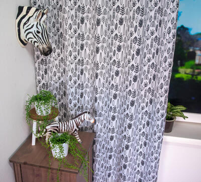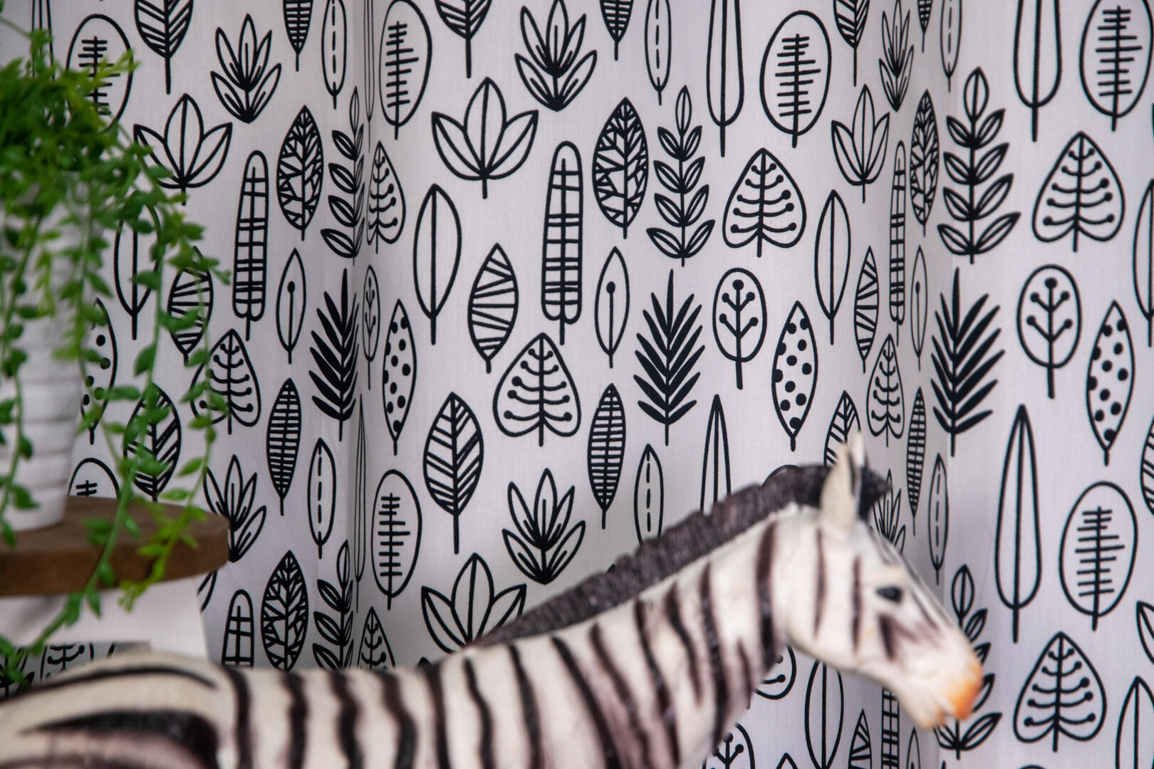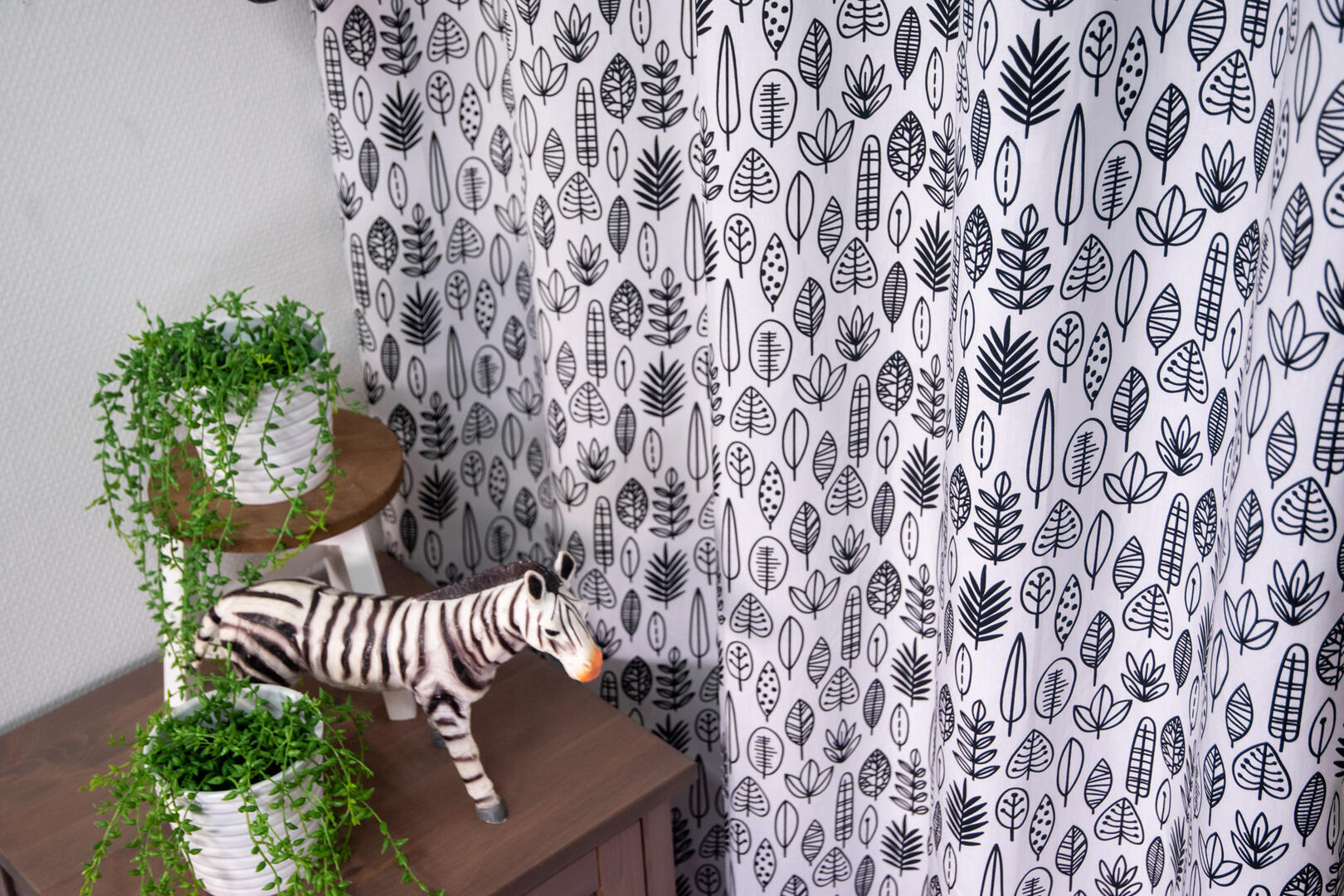 Hoe leuk is dit! zelf met textielstiften je eigen gordijn inkleuren. De bladeren zijn ± 10cm groot. Hoeveel bladeren kleur jij op dit bijzondere kindergordijn?