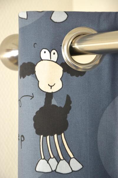 Op dit gordijn staan zoveel witte en zwarte schaapjes afgebeeld dat uw kinderen al in slaap vallen voordat ze allemaal geteld zijn. Door de donkere kleur van het gordijn creeërt u direct een knusse sfeer in de kinderkamer.