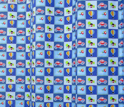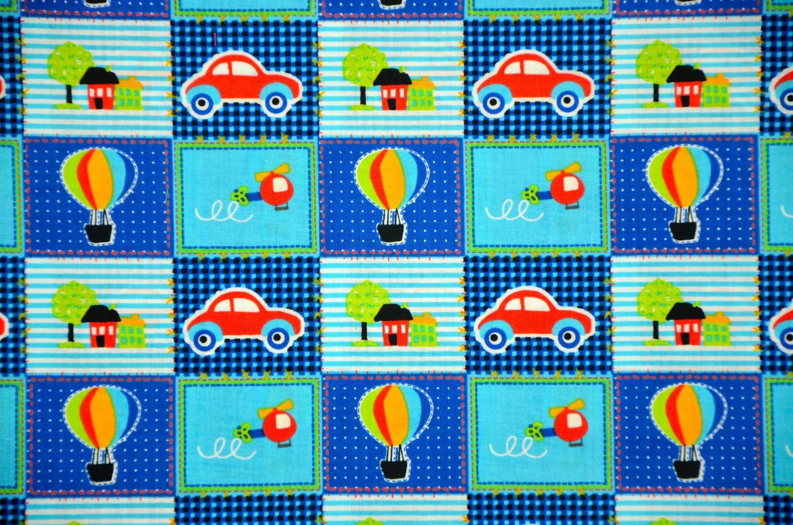 Vrolijk patchwork gordijn voor uw jonge zoontje versierd met auto's, luchtballonen en helikopters. Deze gordijnen maken elke kinderkamer tot een gezellige plek om uren te spelen of lekker weg te doezelen.
