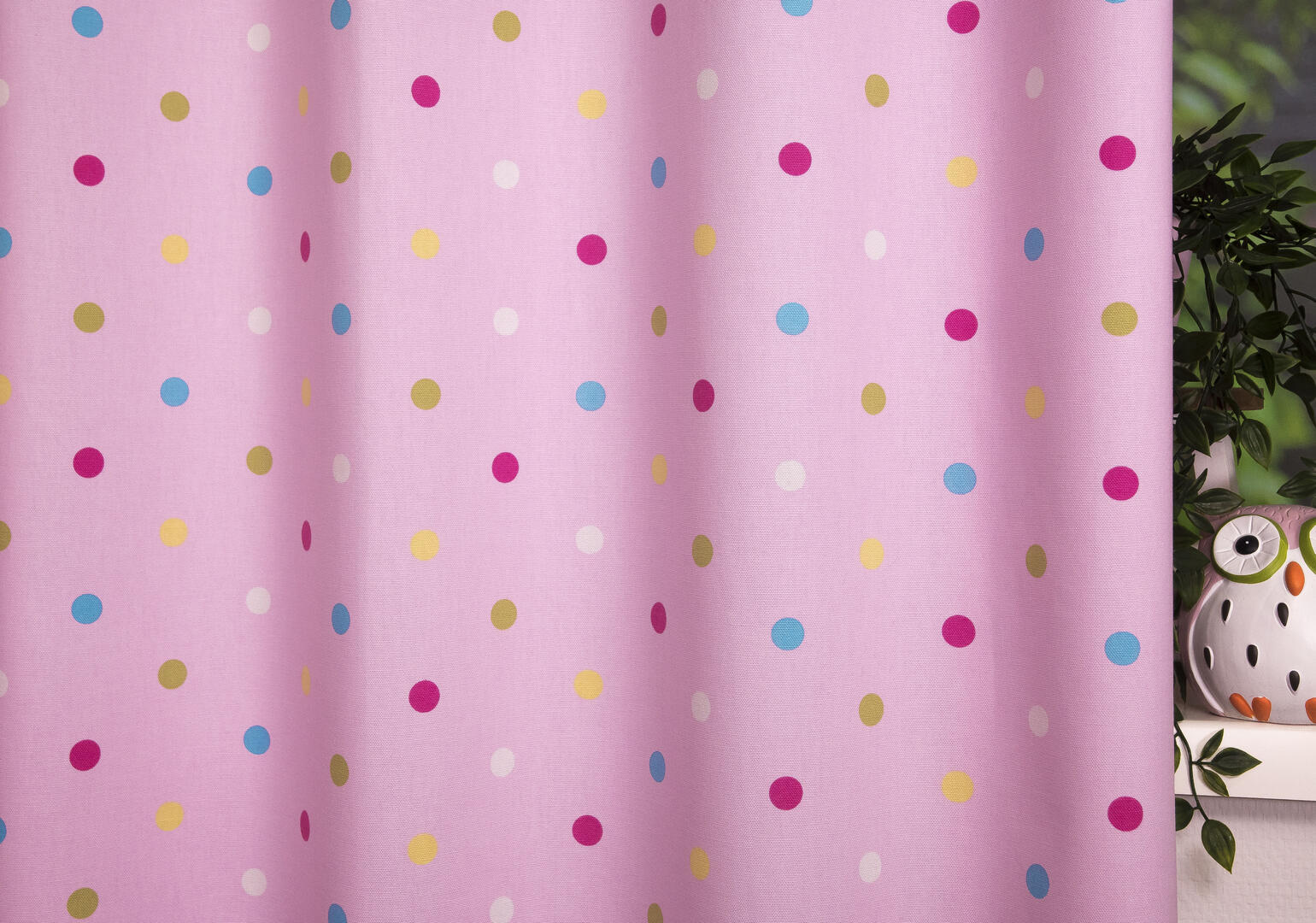 Deze gordijnstof met de naam Coloured Dots (Eijffinger) is gemaakt van de beste materialen waardoor het gordijn mooi in de plooi valt.