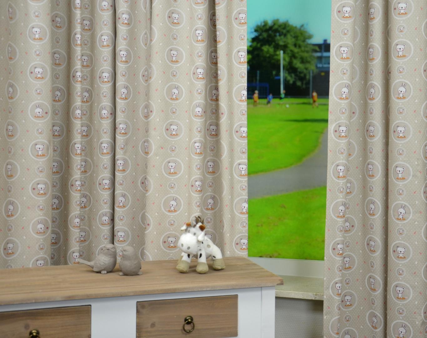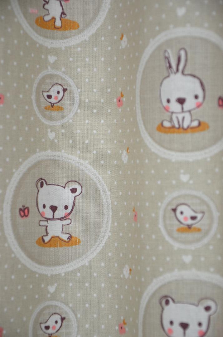 Ideaal gordijn voor op een kinderkamer of babykamer. Supermooi met konijnen en beren. Het kindergordijn stimuleert de schattigheid van de babykamer. Door allerlei accessoires kun je het helemaal een leuke beestenboel van maken. Het materiaal dat gebruikt is voor dit kindergordijn is 100% waardoor de stof heerlijk zacht aan voelt, Je kan dit kindergordijn heel goed verduisterend maken door er een verduisterende stof achter te laten maken. Hierdoor is de kinderkamer gelijk donker zodra je de gordijn sluit.