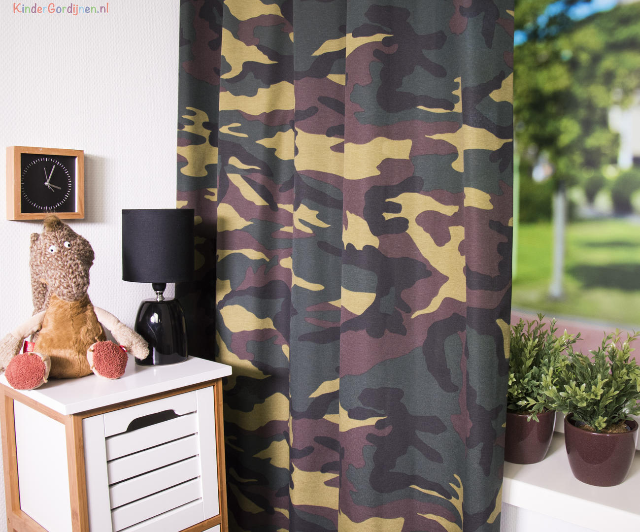 Dit camouflage gordijn is geïnspireerd op het kleurgebruik van de Koninklijke landmacht of kort gezegd: een stoer legergordijn. Het leger en defensie spreken tot de verbeelding, werken in uniform heeft altijd iets bijzonders. The Dutch Army maakt gebruik van groene en bruine camouflage kleuren, dit gordijn is leverbaar in méér variaties. Ook de grijstinten variant , die ook wel ‘urban camouflage’ genoemd wordt. De print is op de voorzijde gedrukt op de matte stof. Wil je extra donker slapen in je eigen army vertrek , dan kan je dit gordijn laten voeren. Extra leger accessoires maken het thema natuurlijk helemaal compleet. Kies jij voor dit typische outdoor gevoel?