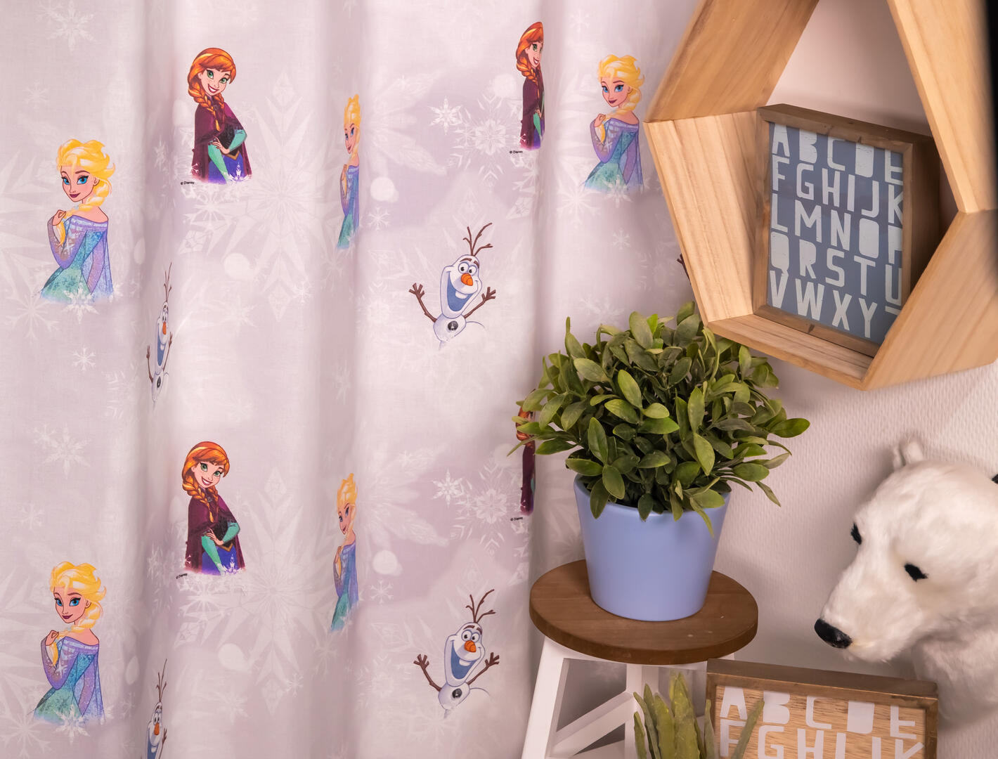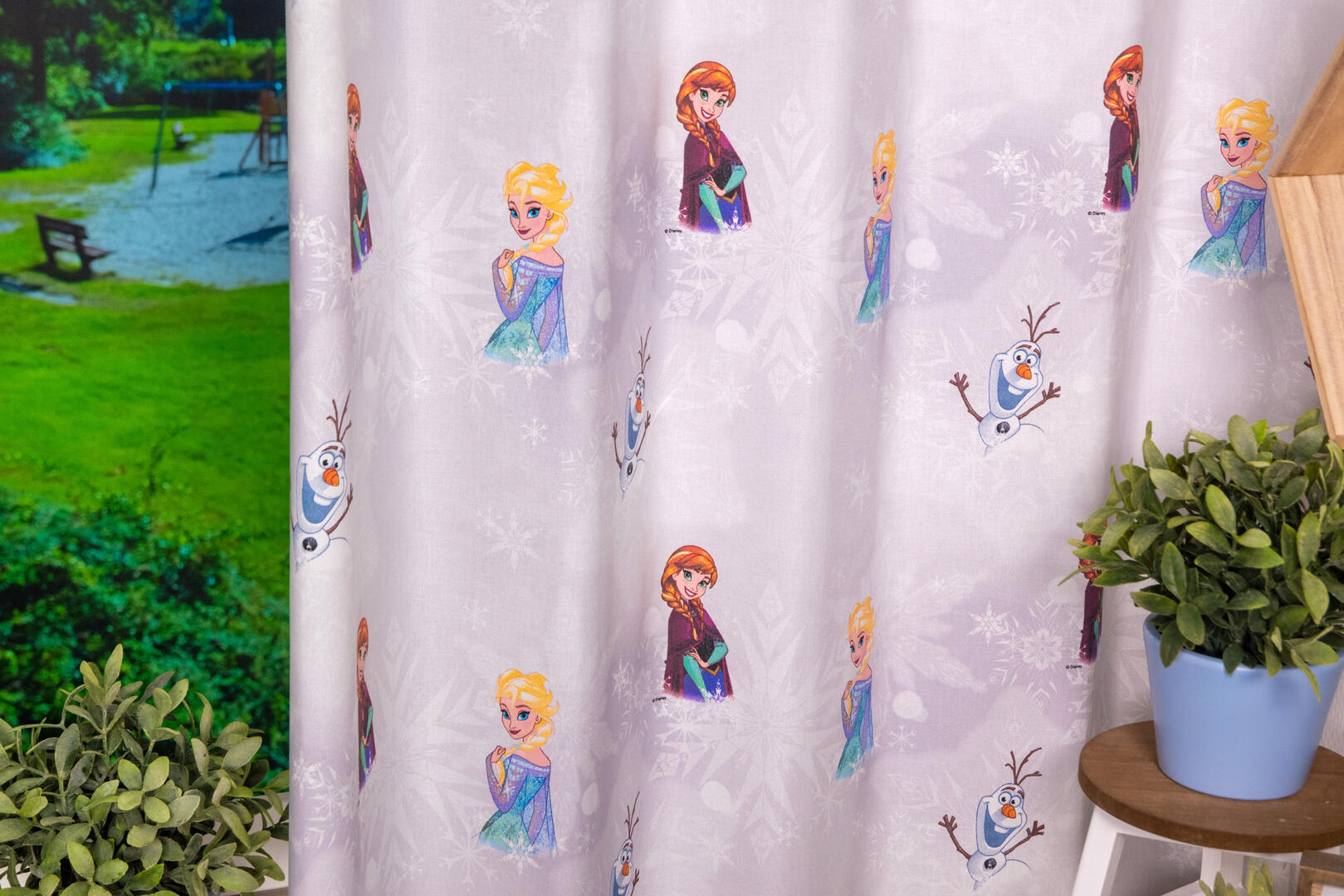 Dit prachtige kindergordijn, met daarop Elsa, Olaf en Anna is perfect voor iedere kinderkamer. Deze gordijnstof met de naam 'Elsa the Snow Queen' is gemaakt van katoen waardoor het gordijn mooi in de plooi valt. Laat voor een aangename verduistering van de kamer de gordijnen voeren: een verschil van dag en nacht.