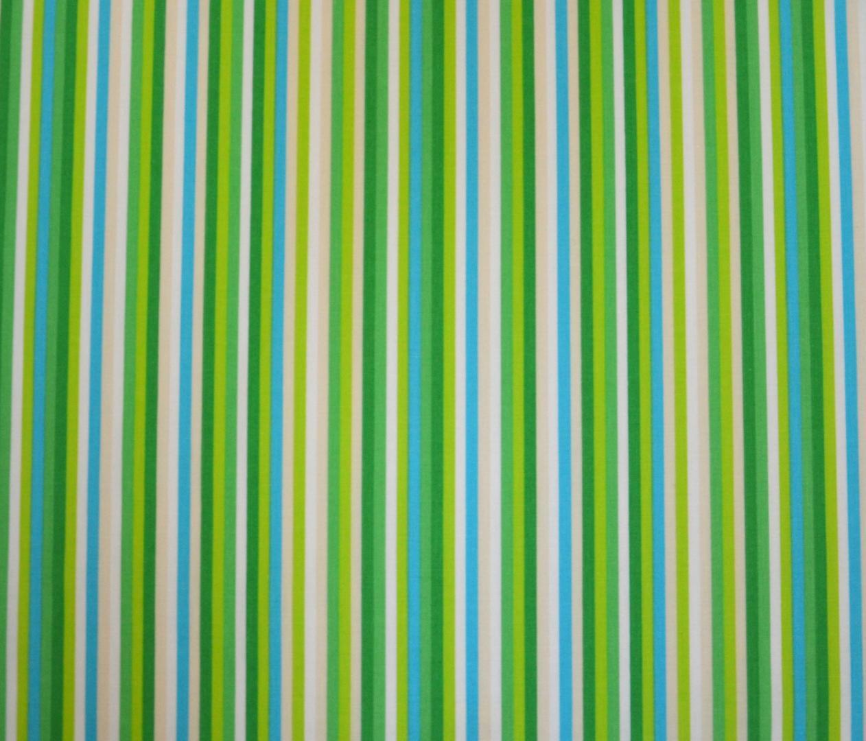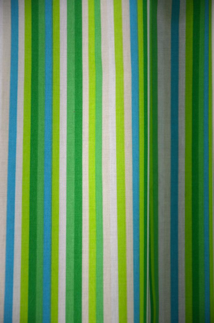 Katoenen gordijn met smalle strepen in de lengterichting. De gevarieerde gordijnstof met drie kleurtinten is beschikbaar in mosgroen, felblauw of frisgroen.
