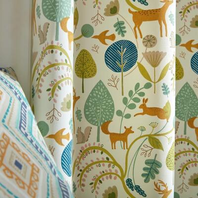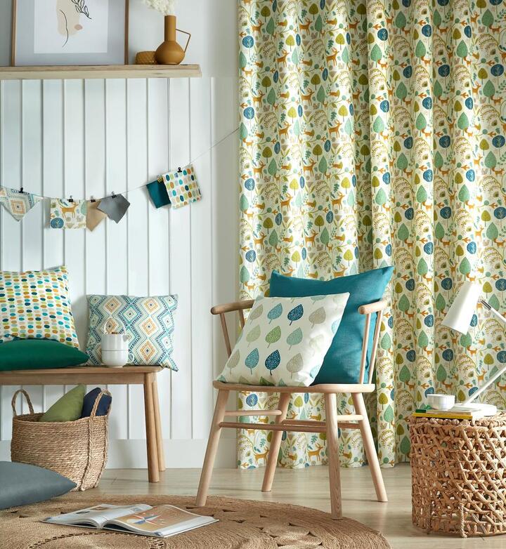Stap binnen in een betoverende wereld met de adembenemende Scandi Woodland kindergordijnen. Deze 100% katoenen stof met Scandinavisch ontwerp brengt een magisch tafereel van bomen, bladeren en allerlei planten en dieren naar uw kinderkamer. De gordijnen zijn verkrijgbaar in drie levendige kleurstellingen: oranje, okergeel en petrol. Kies de kleur die het beste past bij de stijl en persoonlijkheid van uw kinderen. De Scandi Woodland kindergordijnen zijn niet alleen prachtig, maar ook gemaakt van zware kwaliteit om jarenlang plezier te garanderen. Ze geven een levendige kleur aan het interieur en voegen een speels en vrolijk element toe de kinderkamer, deze gordijnen passen perfect en zullen overal een mooie toevoeging zijn.