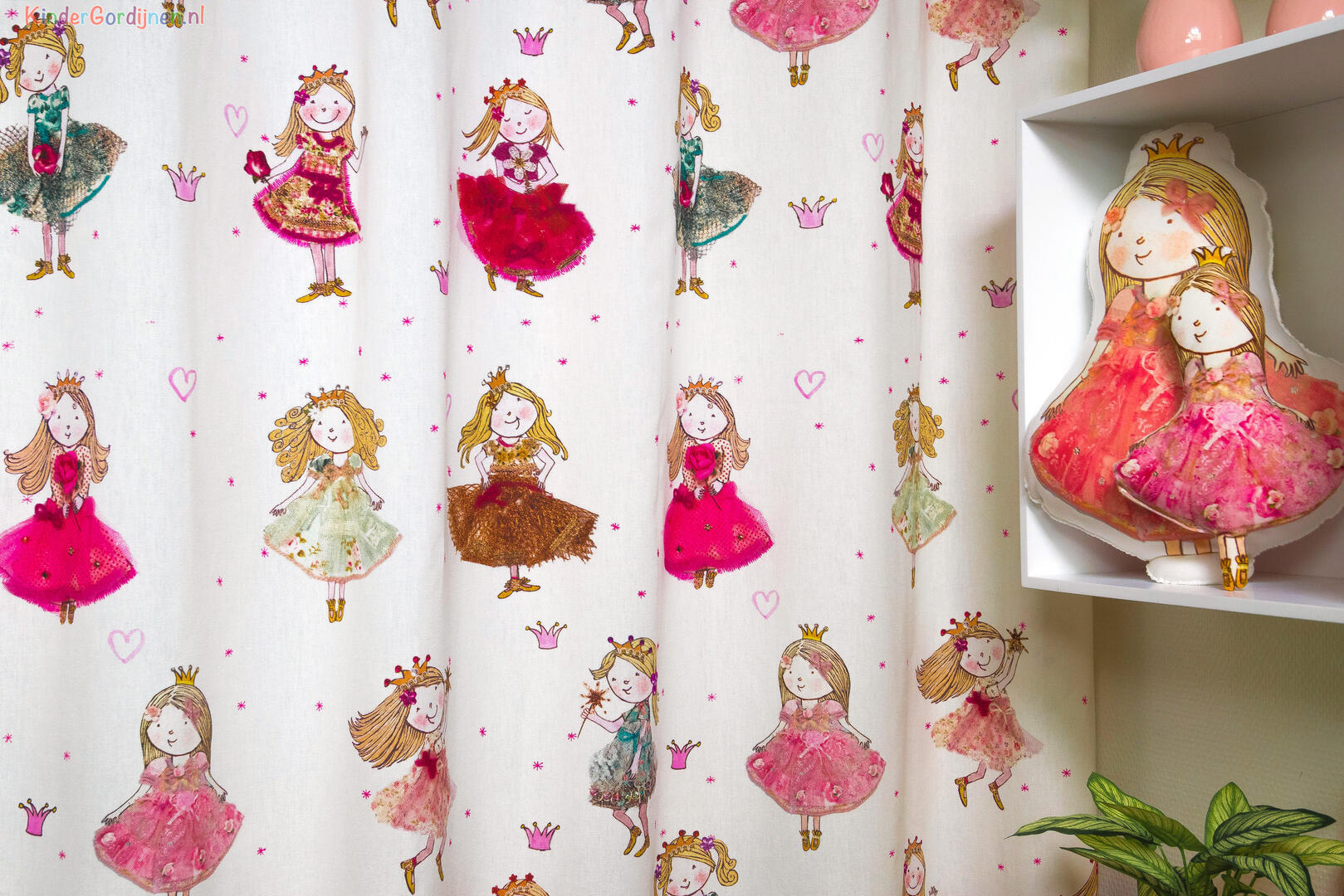 Het stylen van de kinderkamer is geweldig leuk om te doen en hoe bijzonder is het om een gordijn van een échte ontwerpster te hebben! Dit kindergordijn is leverbaar in 2 verschillende ondergrondkleuren: Pastel roze en fris wit. De stof is fraai mat en soepel vallend. De print is aan de voorzijde gedrukt en als je goed kijkt zie je die kenmerkende Hanneke details. Hanneke tekent hele mooie prinsessen boeken en hier zie je de vrolijke dametjes bijna fotografisch afgebeeld, alsof zij zó uit het boek zijn gedanst. Wil je ook nog lekker donker slapen, dan kan het kindergordijn verduisterend gevoerd worden. Kortom, wil jouw eigen danseresje op een bijzondere manier naar dromenland? Geef je eigen prinsesje dan een fantasierijk Hanneke de Jager kindergordijn!