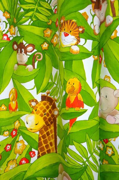 Ohhh …TE GEK! Wie wil er nu geen oerwoud kamer? Knuffelige koppies kijken je aan en wensen jou welterusten. De giraffe van bijna 25 cm groot tovert een glimlach op ieders gezicht. Natuurlijk zijn er nog veel meer dieren te ontdekken, zoek je mee? Wanneer gewenst verduisterend voeren.
