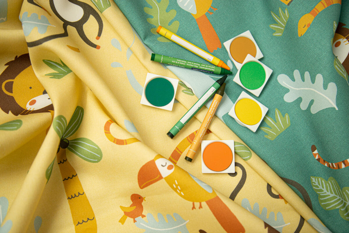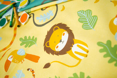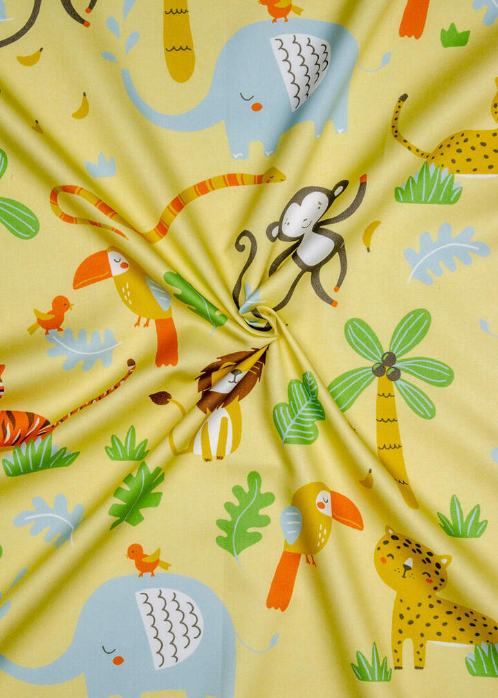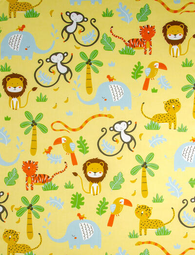 Vrolijk kijken de jungledieren de wereld in!, Is dit babygordijn met z'n vrolijke jungledieren wat voor de kleine van jou? De junglediertjes kijken helder en eigenwijs de slaapkamer in. Door de herhaling van vorm, blijft het gordijn rustig en toch speels. De stof is leverbaar in 2 verschillende kleuren. Voor verduistering desgewenst voeren, een verschil van dag en nacht!💤