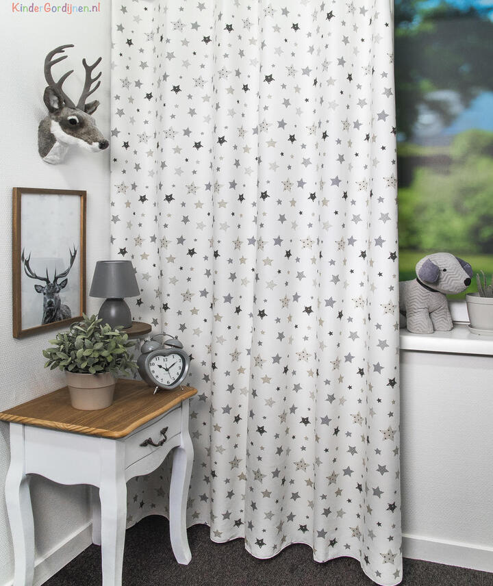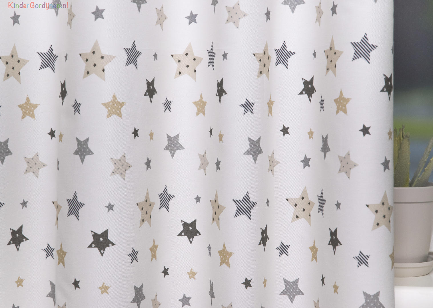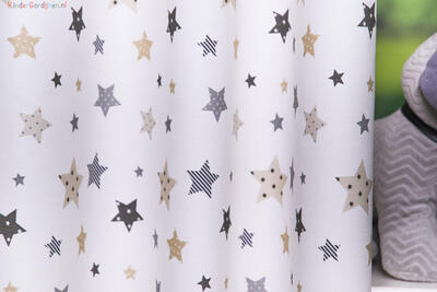 Wat een schitterende kwaliteit gordijnstof! Zien is geloven, zo mooi soepel geweven én maar liefst 280 cm breed! Dat betekent dat het babykamer gordijn meestal naadloos kan worden gemaakt. De is print is gedrukt op een heel fijn geribde stof, wat een vlotte & sportieve uitstraling geeft. Het sterretjes patroon is op de voorzijde gedrukt op de warm witte ondergrond en leverbaar in 3 verschillende kleuren. Blauw- grijs voor de jongenskamer, pastel roze - grijs voor meisjes slaapkamer en camel – grijs voor als je liever geheim wilt houden welk lief kleintje er komt slapen. Combineren kan met een verduisterend rolgordijn uit onze collectie. Of optie voeren aanvinken in het bestelproces wanneer je extra verduistering wenst. Kortom, deze fraaie stofserie is een aanwinst binnen onze enorme collectie!