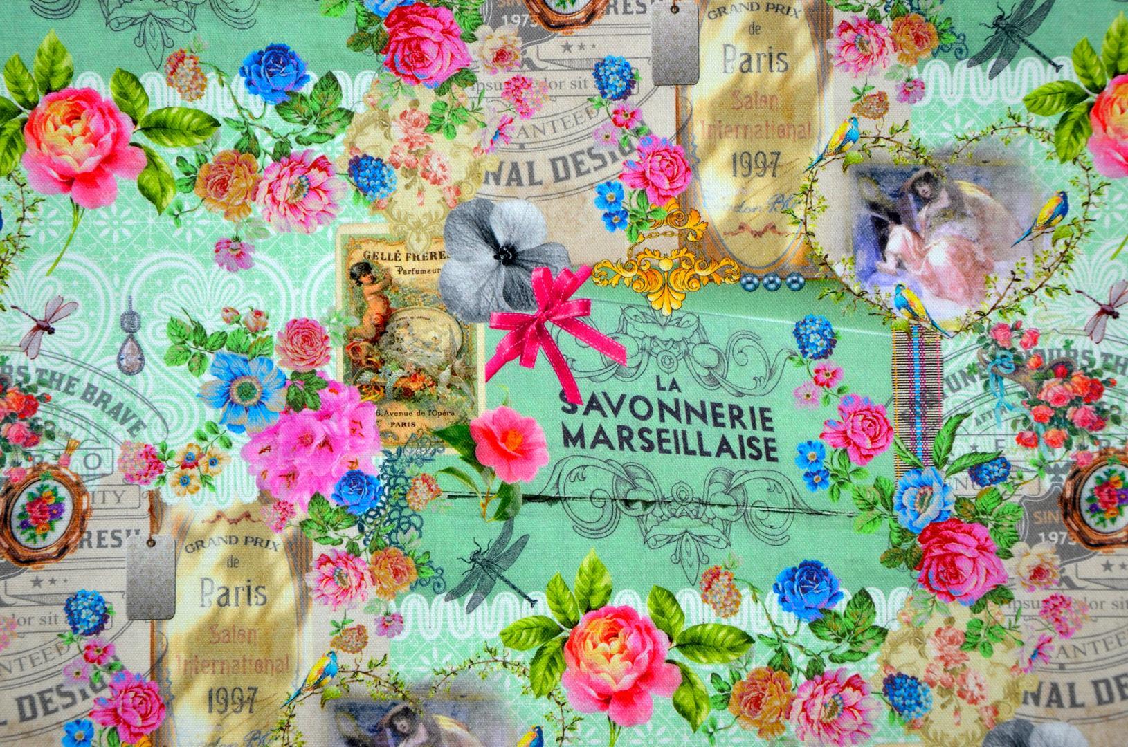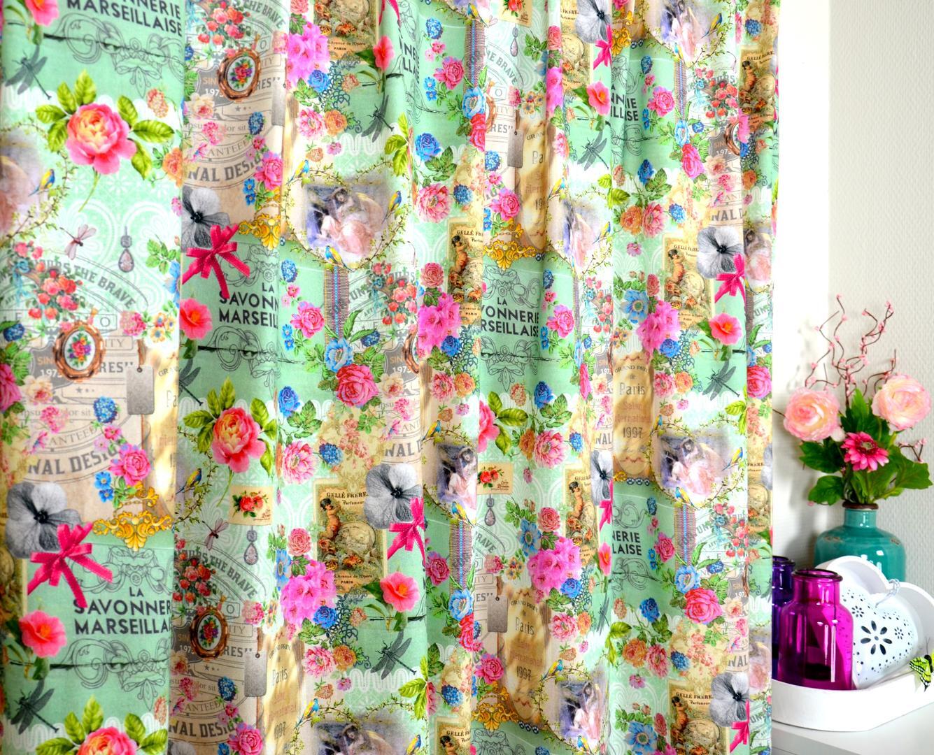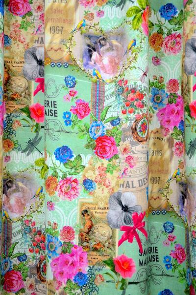 Wegdromen door nostalgie en romantiek, wie wil dat nu niet? De rozen boeketten op het zachte katoen en poederig pastel kleuren geven dat broccante effect. In de huidige woonsfeer mag je dat combineren met stippen, strepen en natuurlijk kant en borduursels! Voor een vleugje extra nostalgie speel je met woonaccessoires uit grootmoeders tijd en leg je geurige zeepjes op de plank. Voor het verduisterende effect even voeren.
