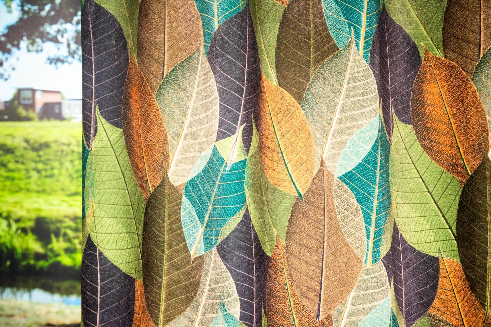 Kindergordijn Leafmix – speels bladmotief in zachte velvet