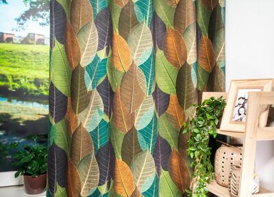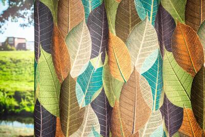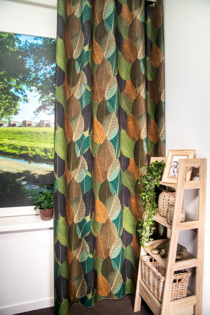 Het kindergordijn Leafmix brengt een vrolijk en geborgen gevoel in de kinderkamer. Het motief bestaat uit overlappende bladeren in verschillende vormen en groottes, waardoor het dessin blijft boeien zonder druk te worden. De bladeren zijn duidelijk herkenbaar, met fijne nerven die zichtbaar in de print zijn verwerkt. Dit geeft het gordijn diepte en maakt het leuk om naar te kijken, ook voor kinderen.