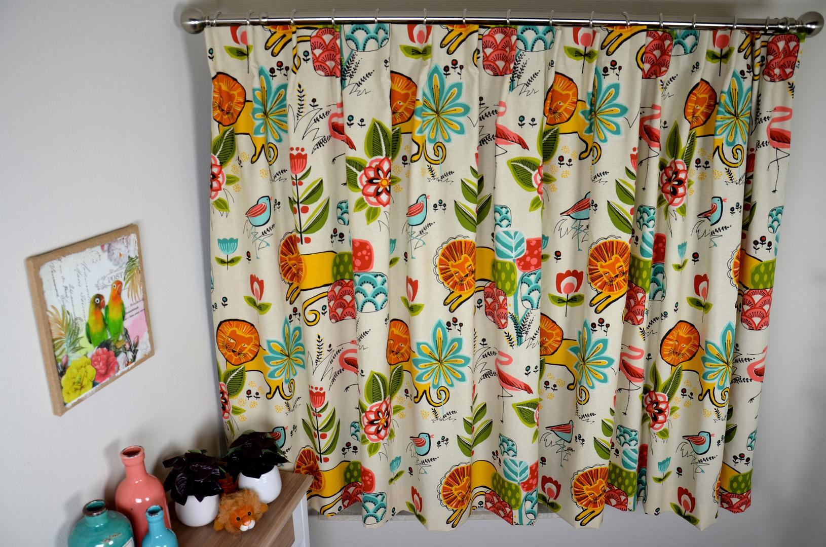 Gordijnen naar Spaans ontwerp! Dat kun je zien aan de tekening én het Zuidelijke warme kleurgebruik. De stof heeft een fraaie linnenlook als ondergrondkleur. De leeuw is maar liefst 20 x 25 cm groot en gedrukt op matte, soepelvallende katoenen stof. Doordat de stof kamerhoog is, kan deze fraai tot de grond gemaakt worden voor dezelfde prijs! Voor extra verduistering even laten voeren. Mag de Spaanse zon in jouw kamer stralen?