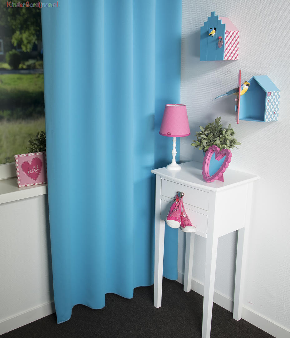 De keuze is reuze bij dit kindergordijn! Leverbaar alle LIEF! en STOER! kleuren, jouw lievelingsvariant zit er zeker bij. Wat de stof nog extra bijzonder maakt is zijn DIM-OUT effect; dat betekent dat het gordijn de kamer al behoorlijk donker maakt. Wanneer je 100% verduistering wenst, kun je de soepelvallende stof óók nog laten voeren. Het gordijn heeft aan de voor- en achterzijde dezelfde kleur, wanneer deze extra gevoerd wordt, wordt de achterzijde egaal wit wat zonlicht reflecteerd en zo warmte buiten houdt. TIP voor extra verduistering: meet het gordijn royaal in de breedte op, zodat er geen lichtkieren ontstaan. Ook een rail aan het plafond en het gordijn tot de vloer zorgt voor de minste kiervorming. SWEET DREAMS!