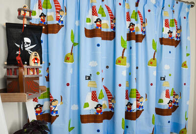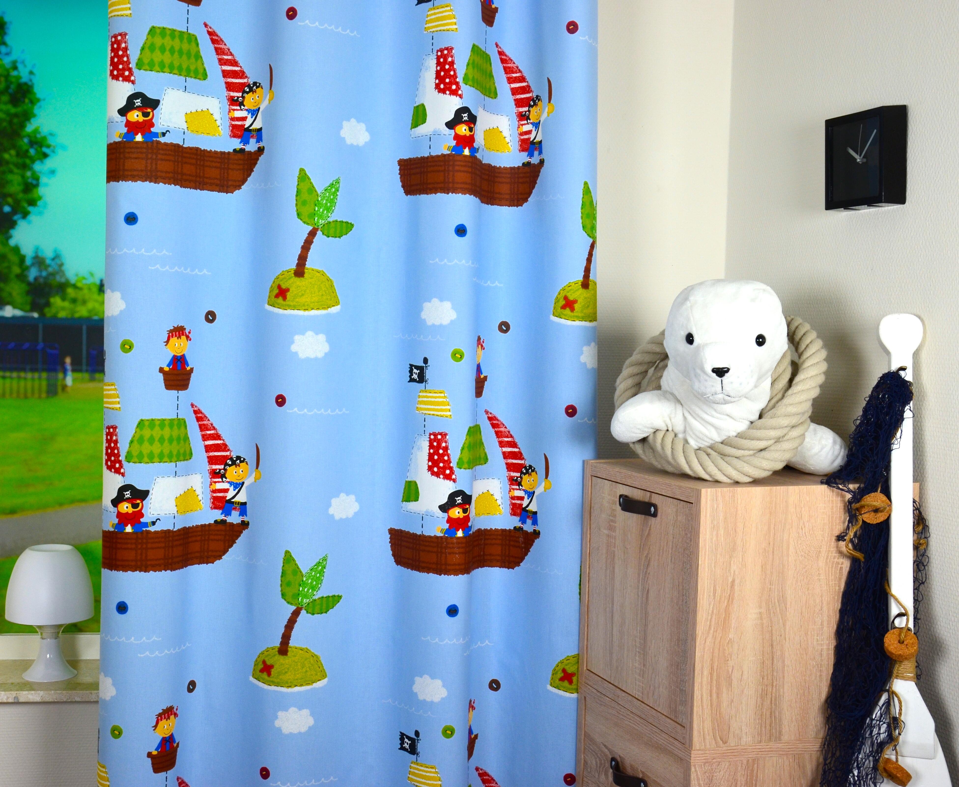De frisse wind, zon & zee, vaar jij met ons mee? Echte jongensgordijnen voor de fantasierijke jongeman! De bootjes zijn gedrukt op matte, lichtblauwe stof en zo’n 25 cm groot. Door dit royale patroon kan je het gordijn prima tot de grond laten maken. Wanneer je het thema wilt uitbreiden is een wand met “lucht/ wolken behang” leuk of een verzameling piraten van accessoires. Dat geeft altijd een WOW effect! Voor extra kleurbehoud of verduistering graag even voeren.