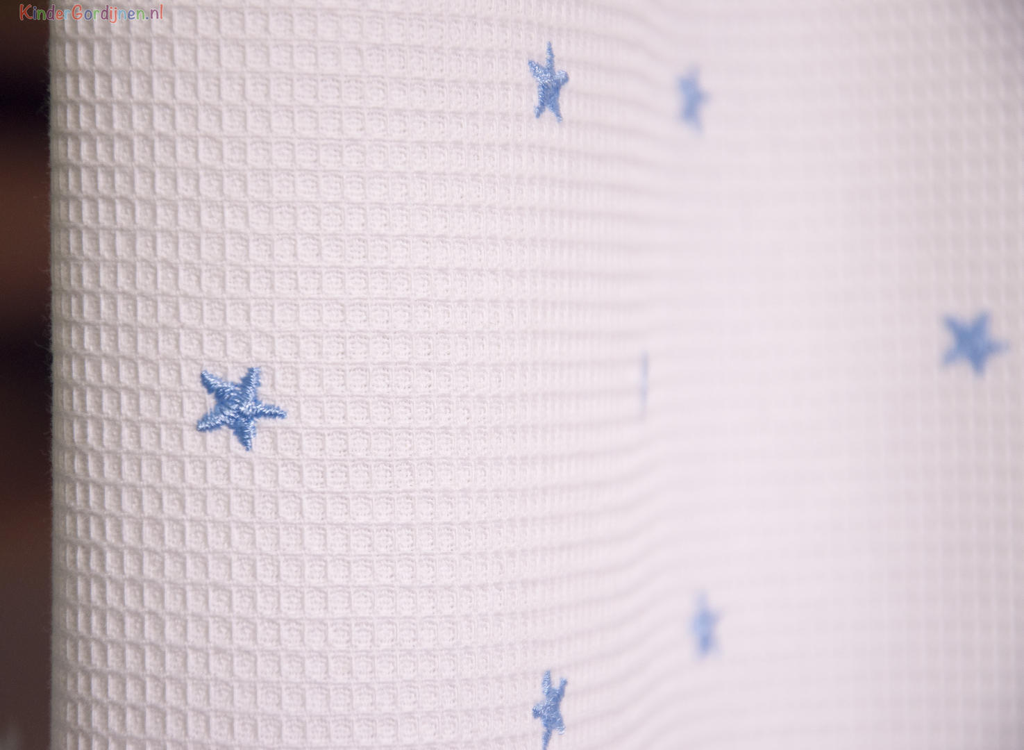 SCHATTIG! Een gordijn voor de babykamer dat rustig is en toch extra decoratief. Dat komt door de wafelpiqué structuur. Dit is een heel fijn ingeweven ribje, wat de stof optisch meer warmte geeft. In combinatie met een harde vloer (laminaat/ Novilon) geeft het daardoor een extra aantrekkelijke ‘boost’. De voor- en achterzijde hebben dezelfde kleur. Het geweven sterretje is 1 cm groot. Dit fraaie babykamer gordijn combineert vast & zeker uitstekend met jouw hemeltje/ aankleedkussen en lakentjes.